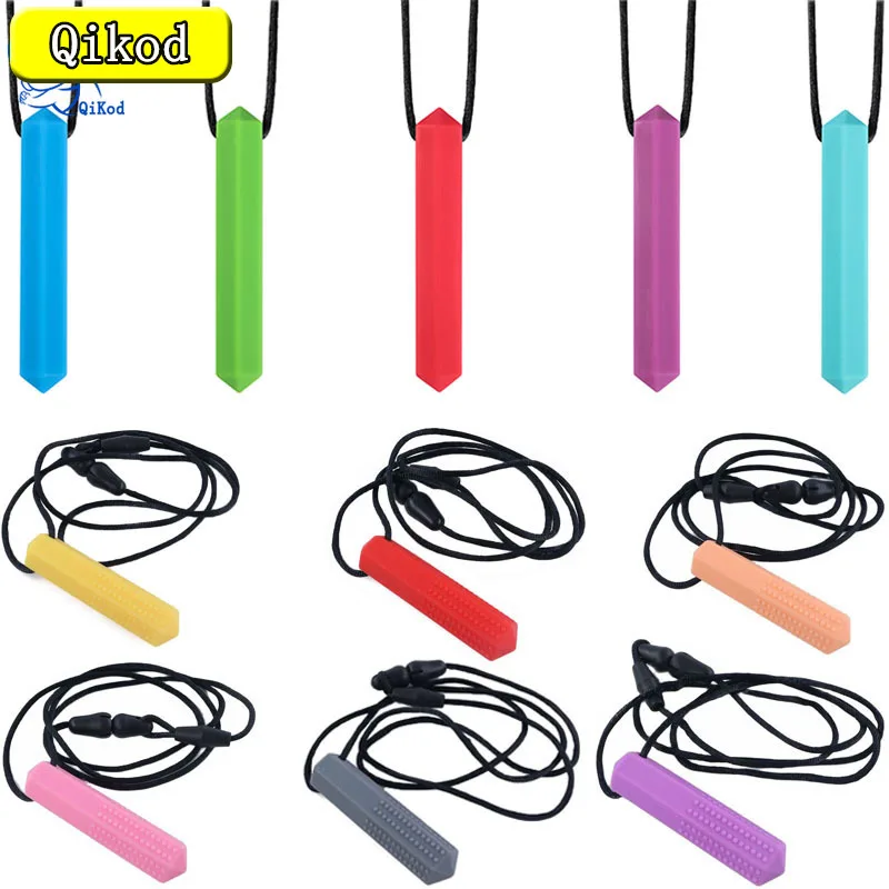 Chewy gem Necklace Autism ADHD Biting Sensory Child Baby Teething Tubes Chew Toy Children Silicone T...
