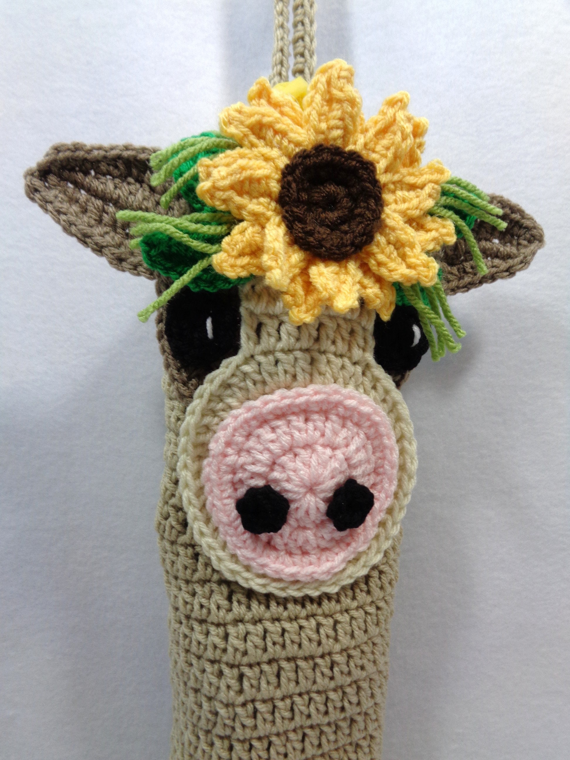 Boho Cow Crochet Plastic Bag Holder: Sunflower Kitchen Decor