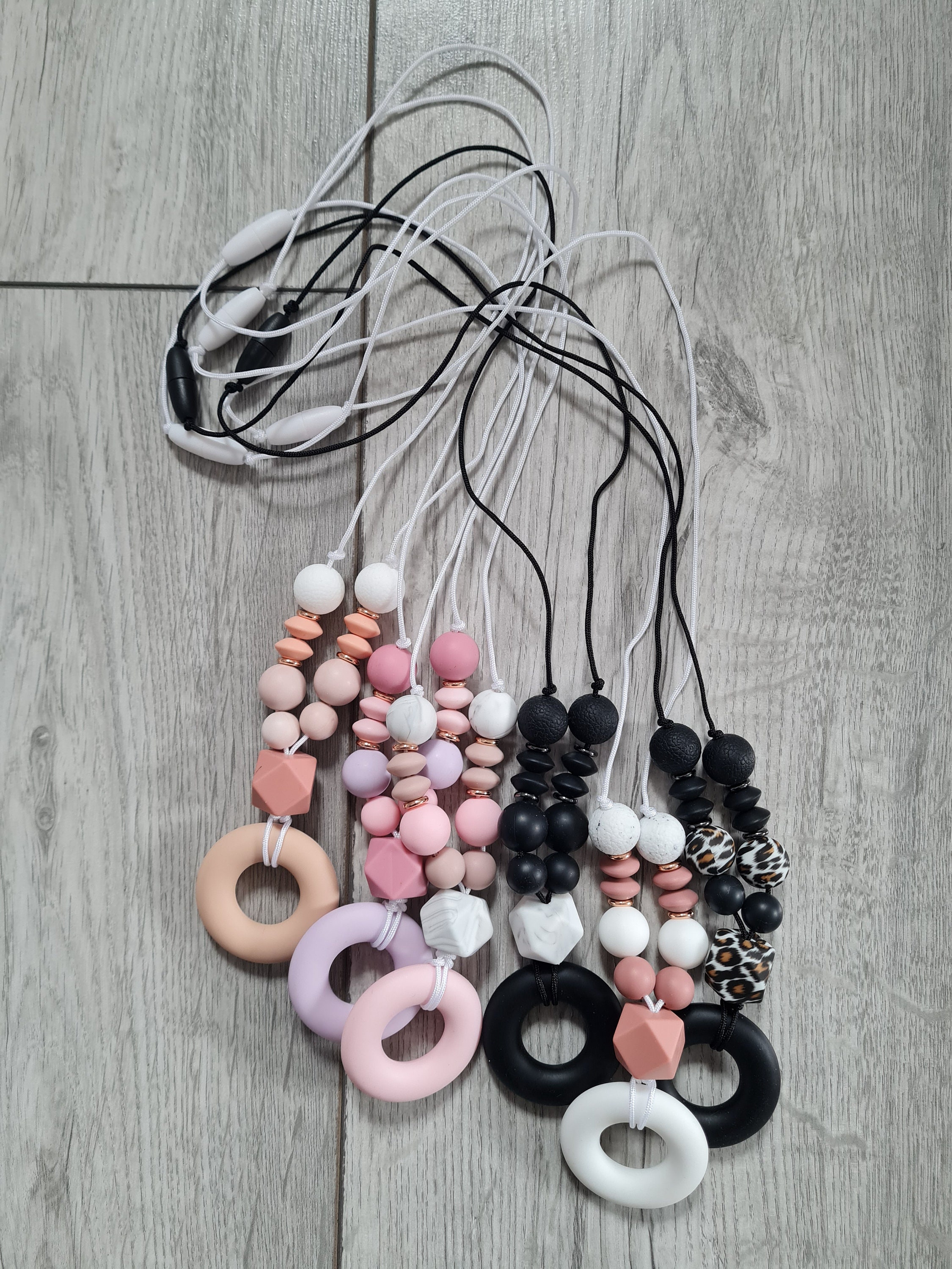 Breastfeeding/nursing necklaces are designed for adults to wear while being safe for babies to chew....