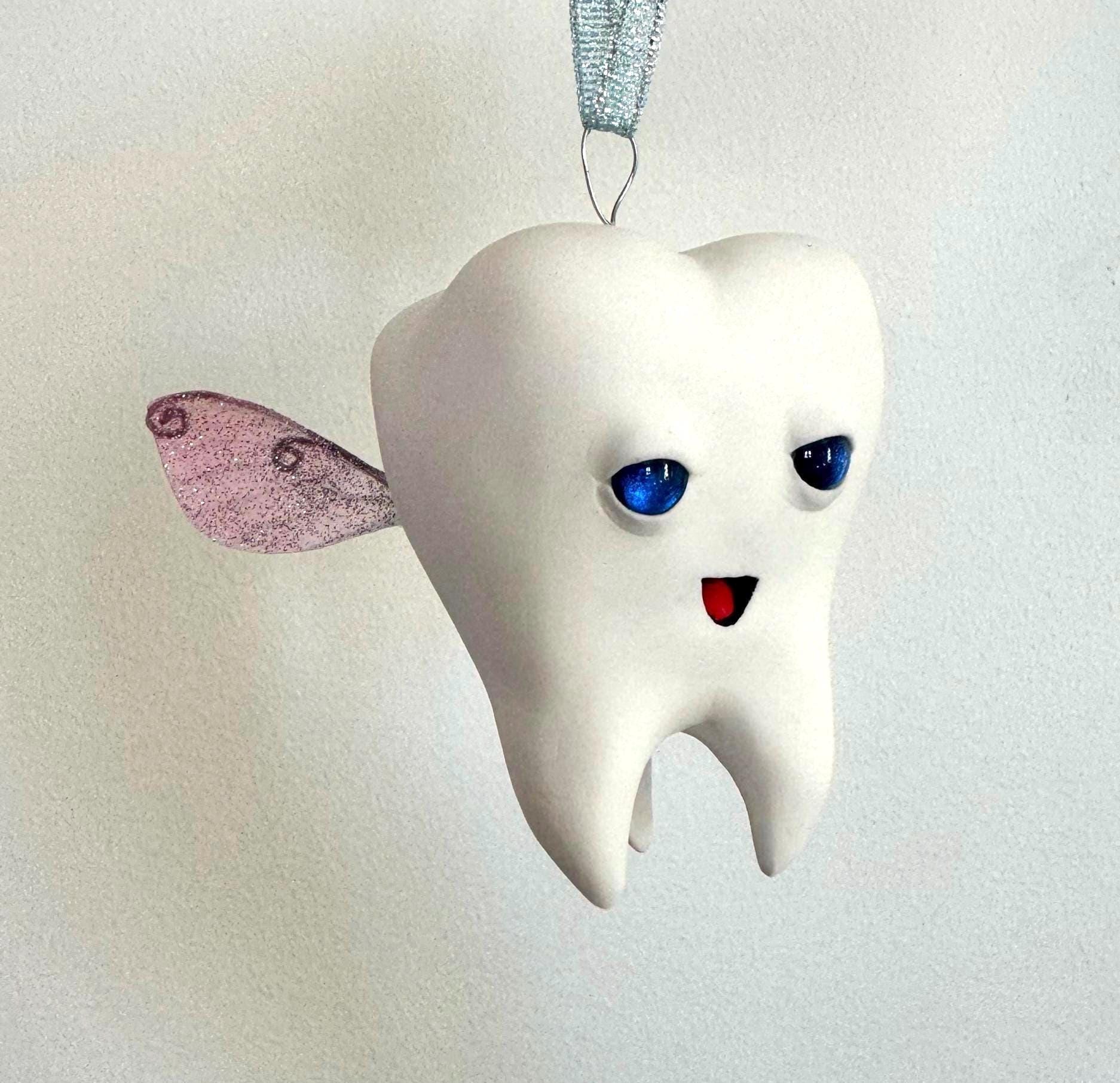 Handmade tooth fairy clay kids ornament artisan christmas tree baub...