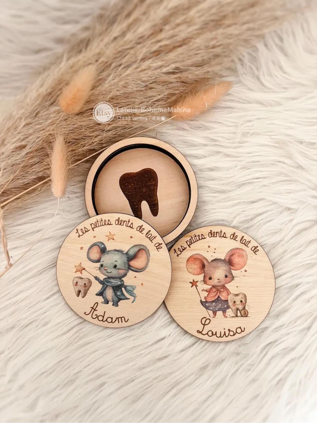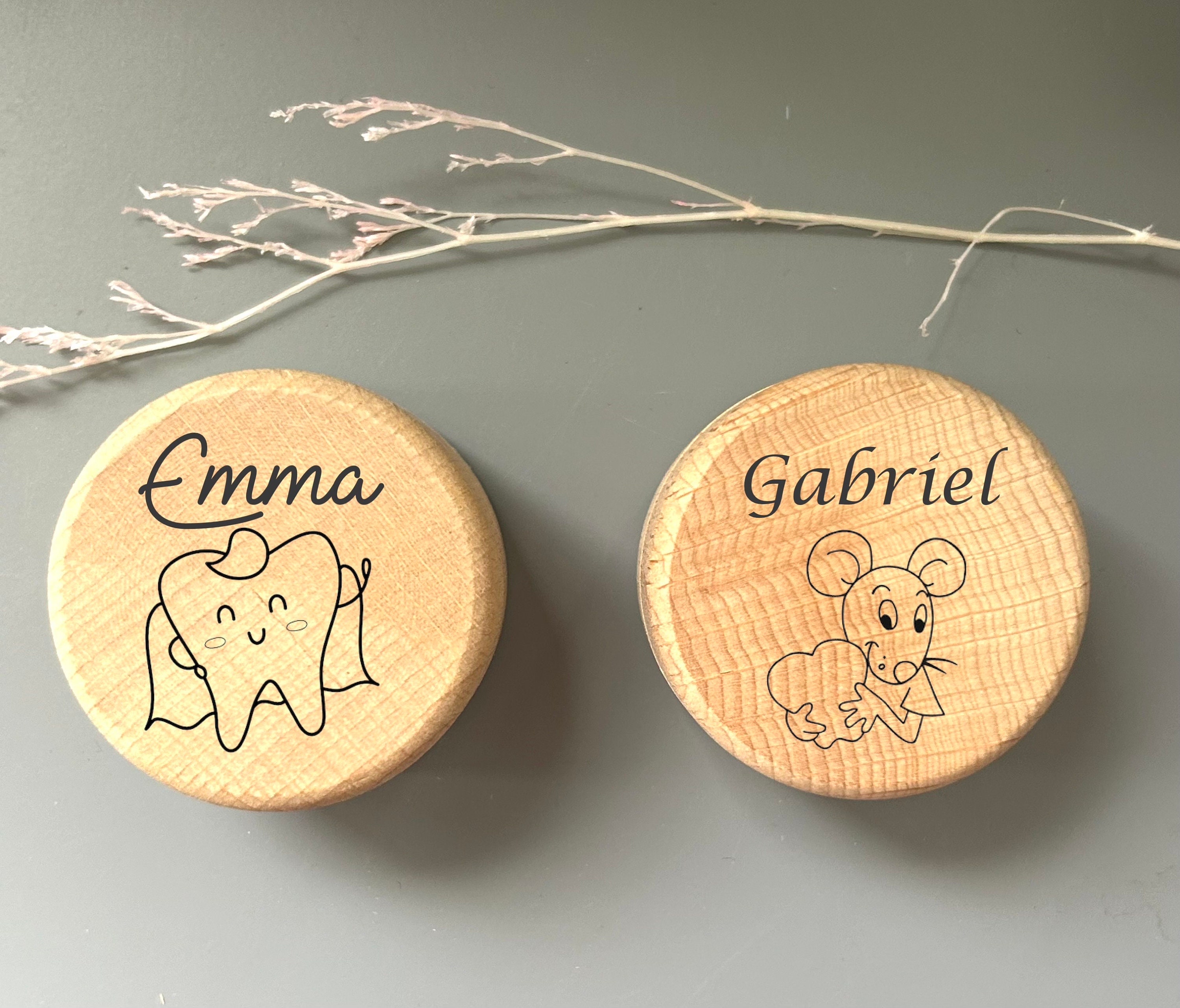 "Personalized wooden tooth box: a unique keepsake to store your child's baby teeth Transform th...