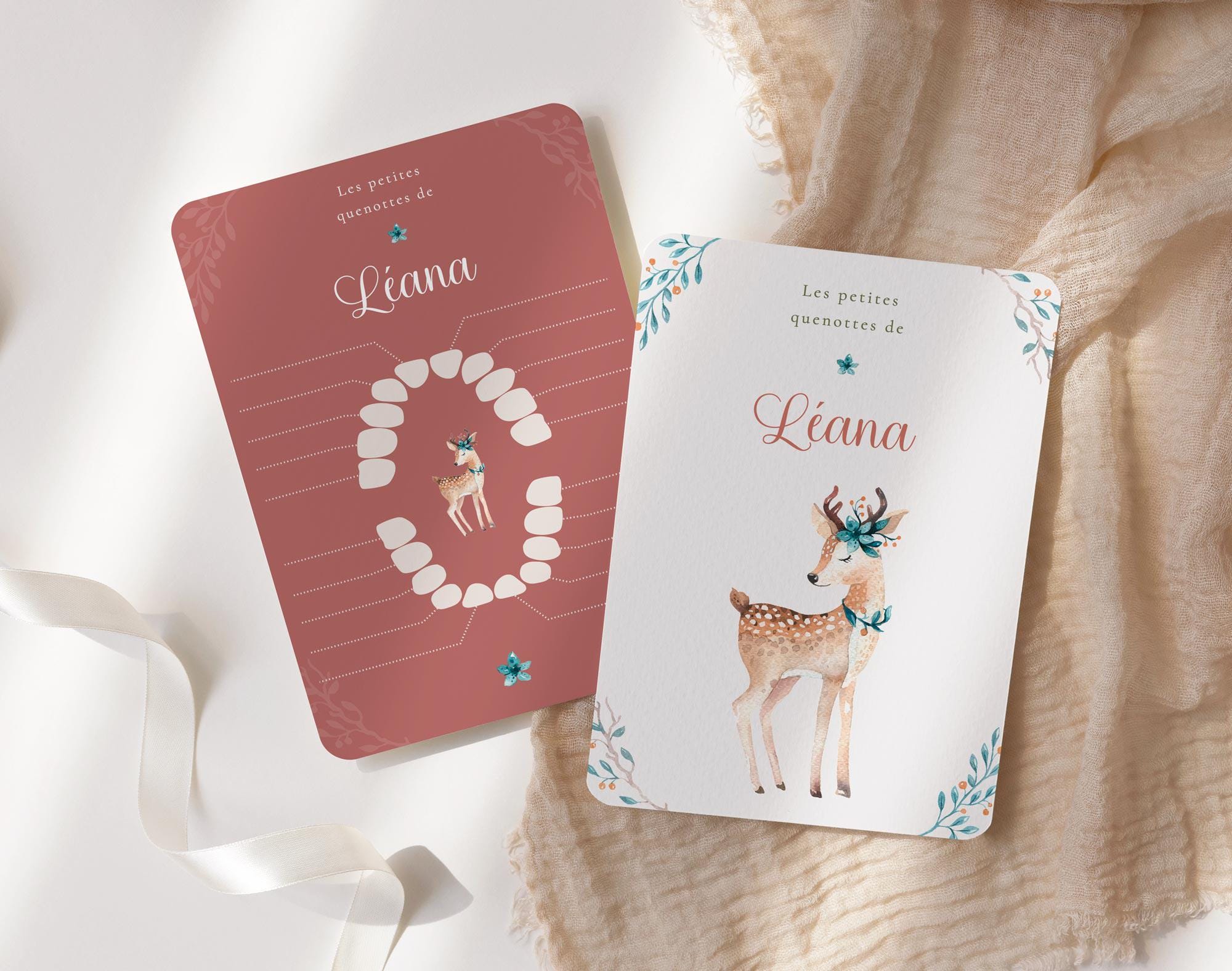 Baby teeth card, tooth card, little mouse, floral deer pattern