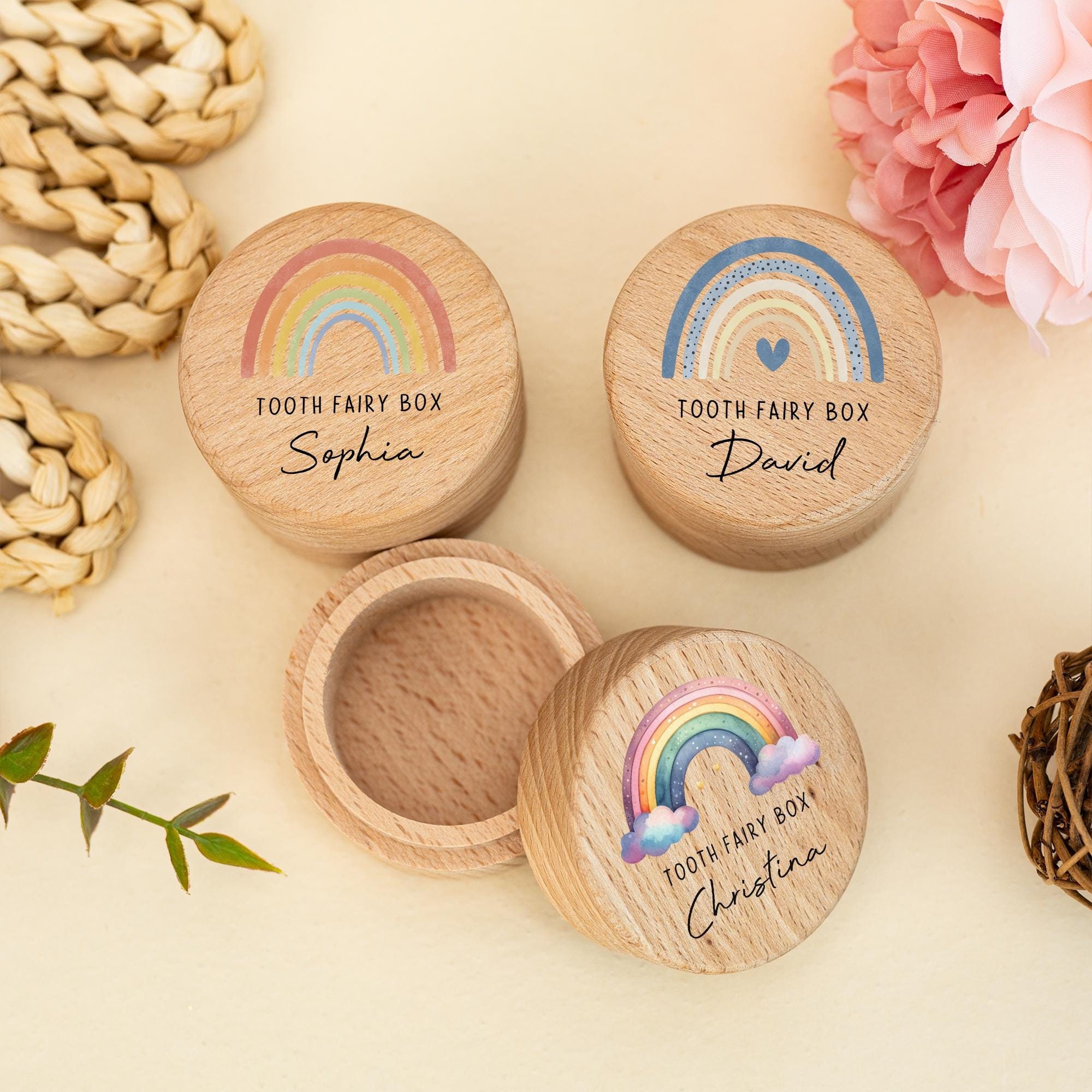 Wooden Milk Tooth Box,Personalized Rainbow Tooth Fairy Box,Custom N...