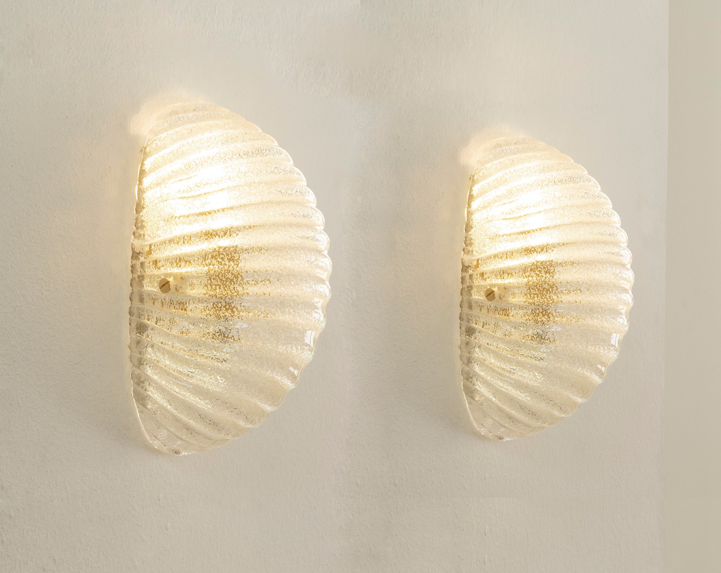 Set of 2 Clear Murano glass shell wall sconce, Made in Italy lighti...