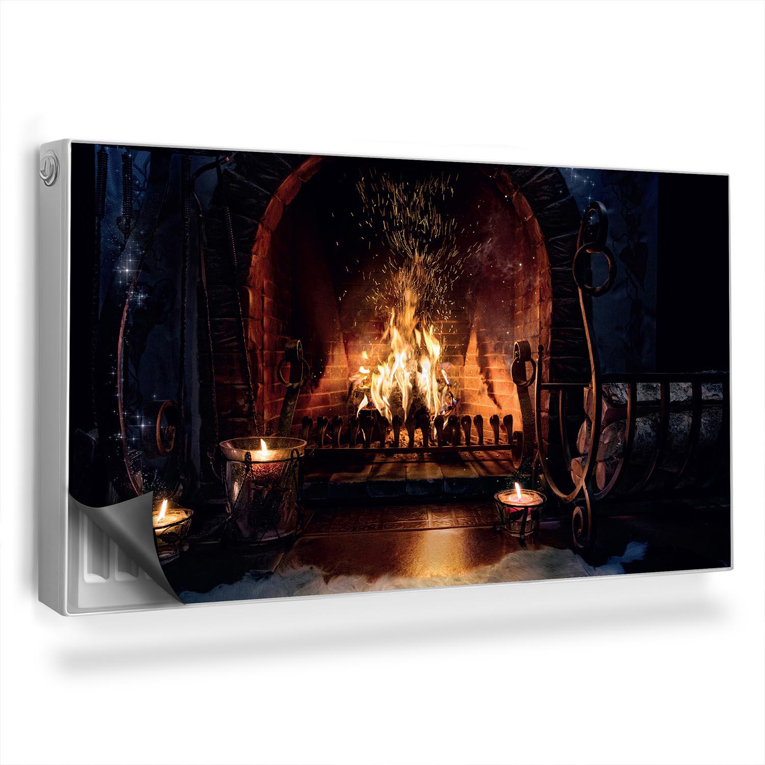 Elegant Fireplace With Burning Wood Radiator Cover, Navy Magnet Mat...