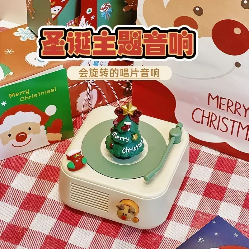 Bluetooth Speaker 5.3 360 Degree Surround Sound Rotating Christmas Record Sound Holiday Table Decora...