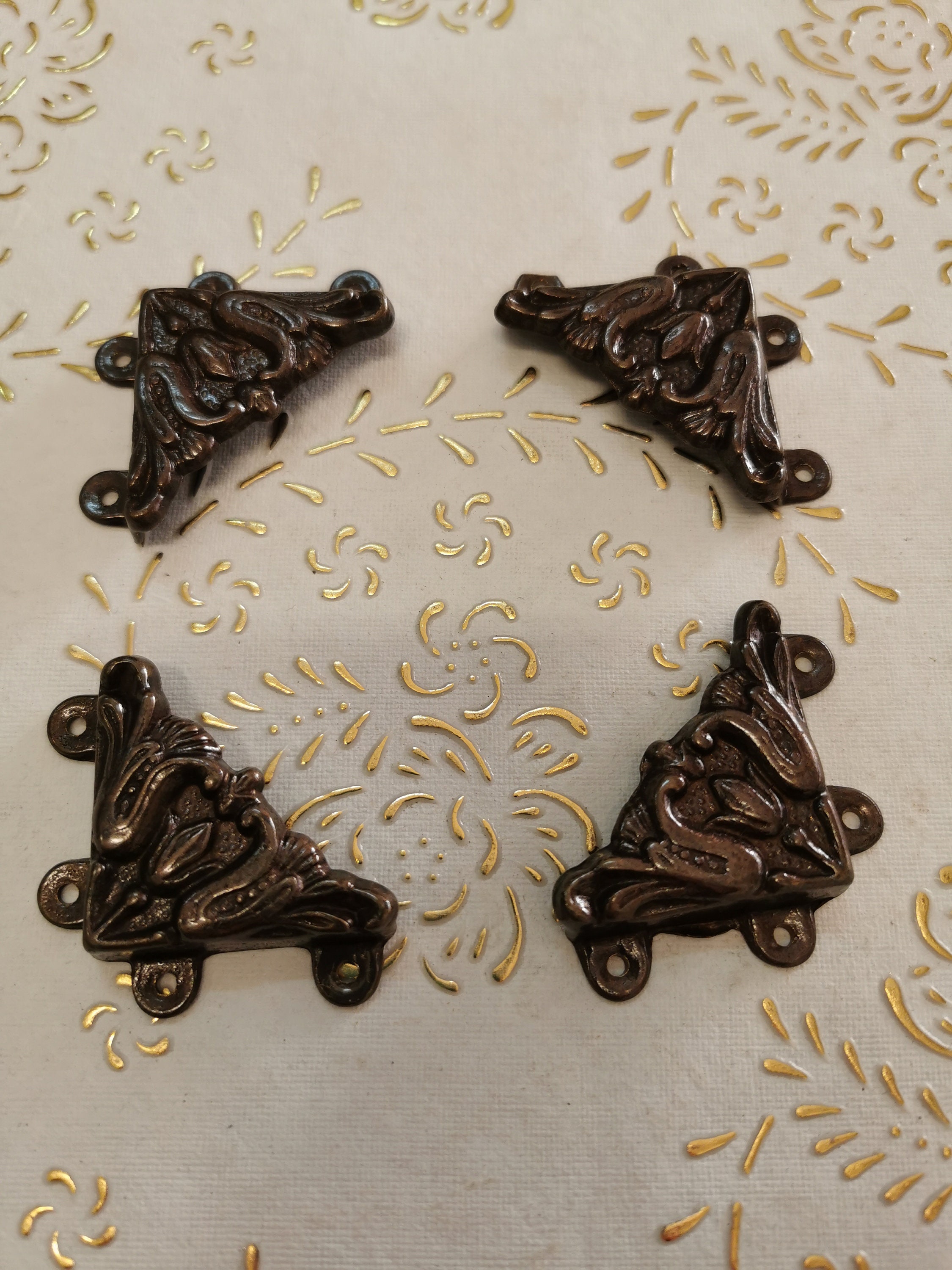 "Vintage Italy Set of 4 high quality solid brass bronze antique corners.Corners for mirrors, fo...