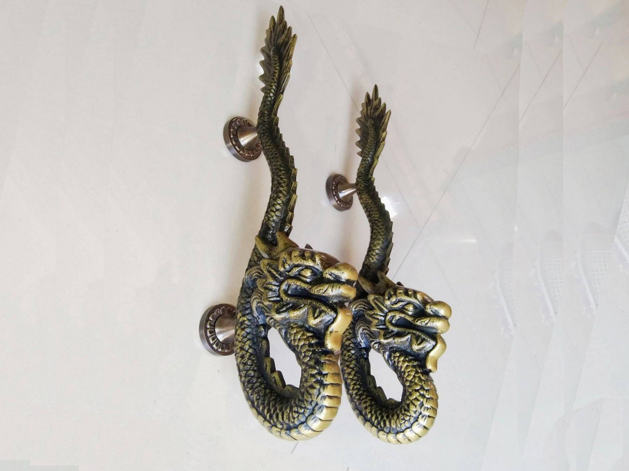 2X DRAGON Door Handle, Door Pulls Handles, Brass Door Pull, Antique...