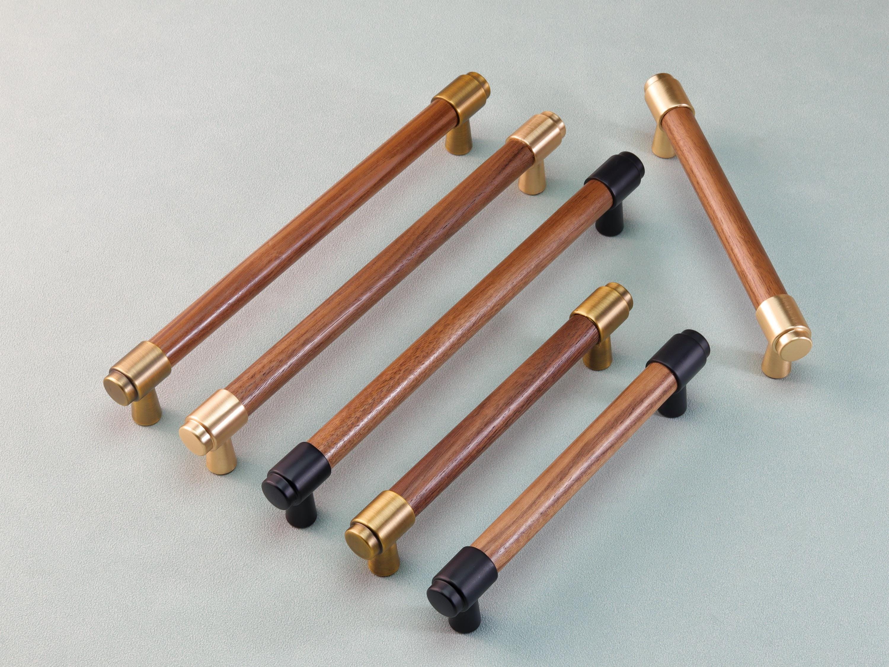 Solid Wood T Bar Pulls Gold Black Walnut Handles Cabinet Door Handl...