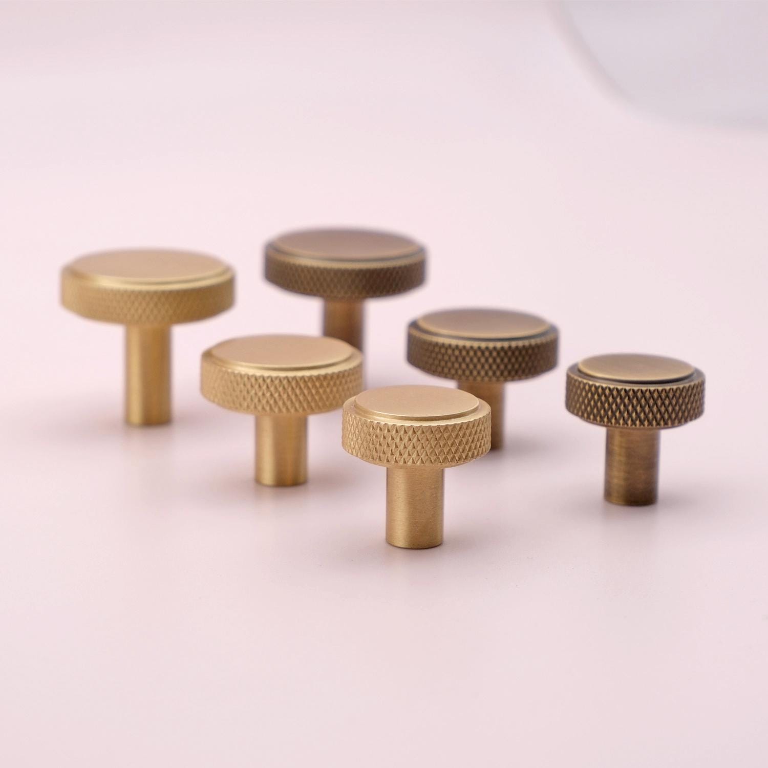 Knurled Cabinet Knobs Solid Brass | Antique Brass Dresser Knobs | G...
