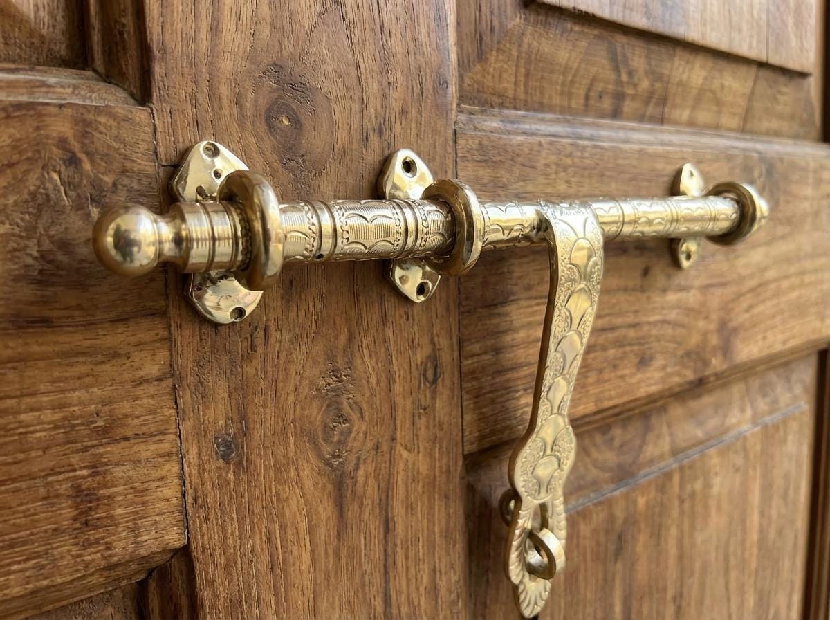 "Our Brass Sliding Door Bolt, meticulously crafted by our skilled Moroccan artisans, is a timel...