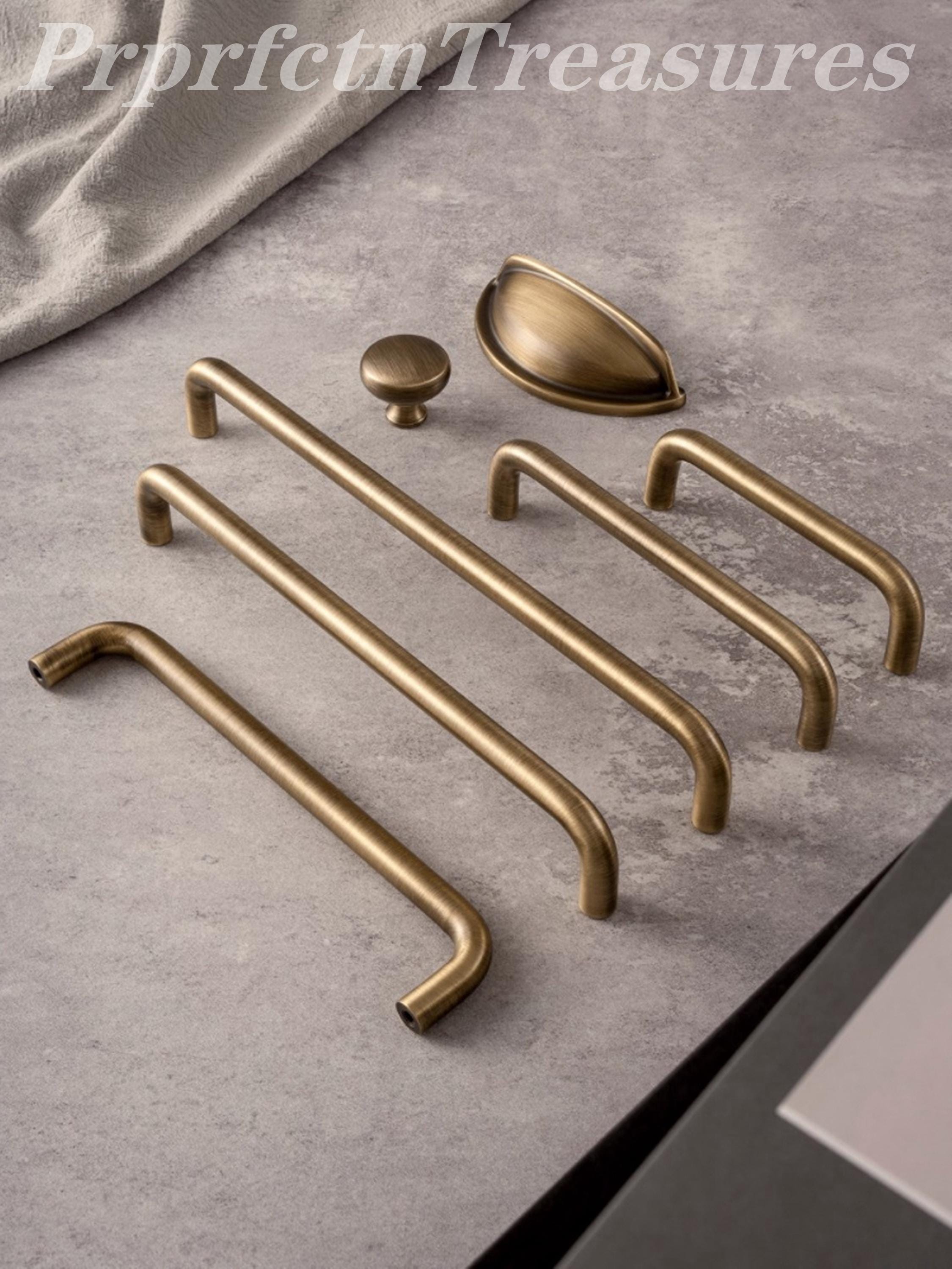 U-Bar Antique Brass Brushed Pulls/Solid Brass Shell Door Handles/T-...