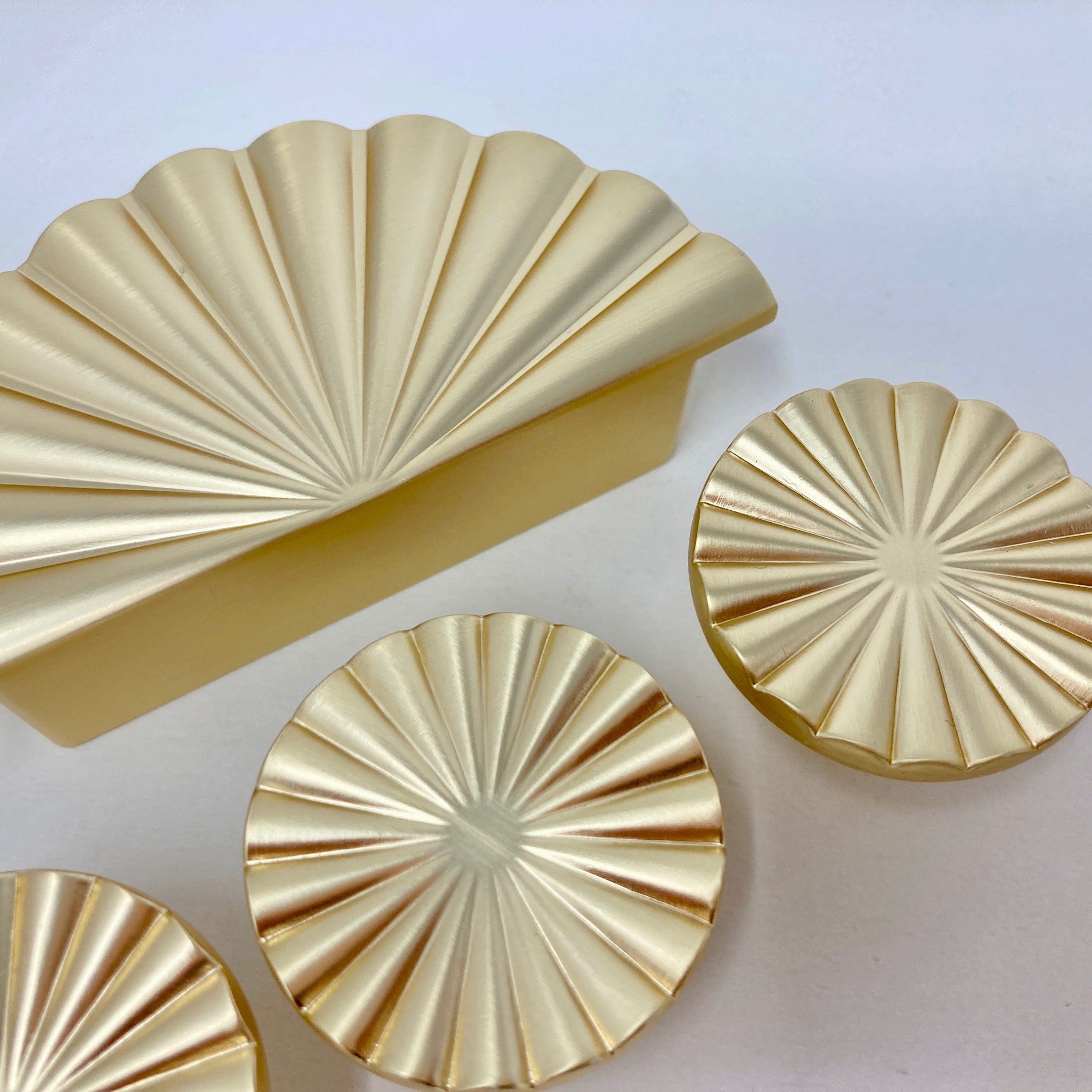 Stunning brushed gold art deco style round fan knob and cup handle Knob - diameter 3.7cm x 3.7cm - 2...