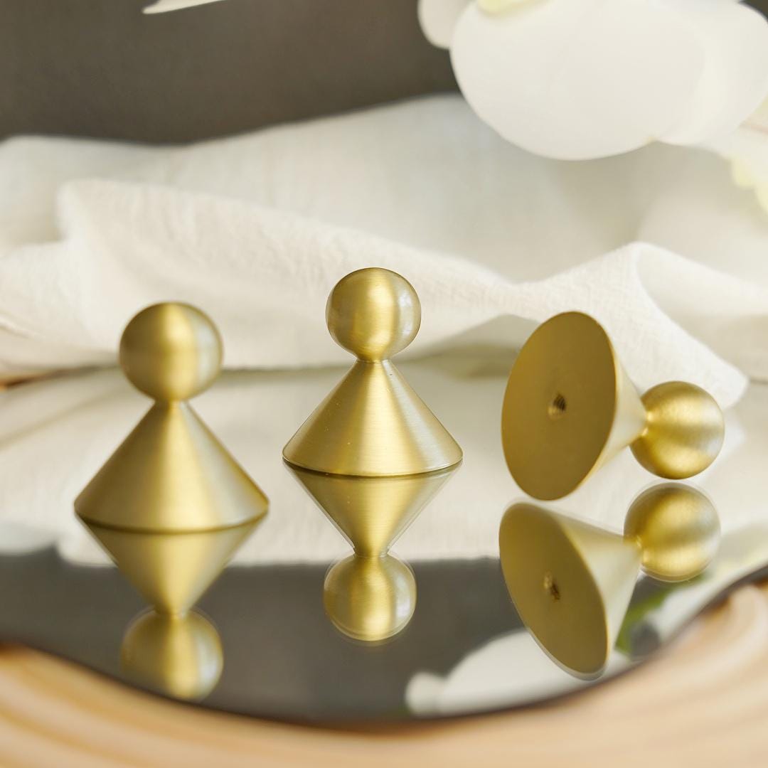 Solid Brass Tapered knob/Brushed Gold Matte Knob/Modern Gold Dresse...