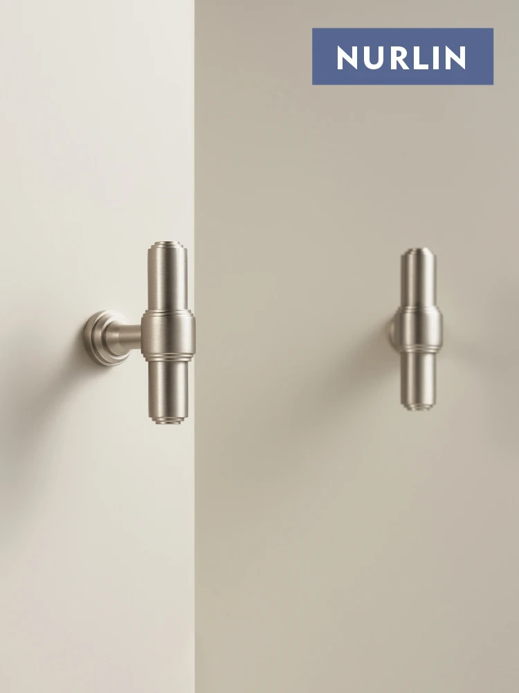 Nurlin Solid Brass Luxurious Matte Silver Nickel Brushed Cabinet Door Drawer Handle Wardrobe Handle ...