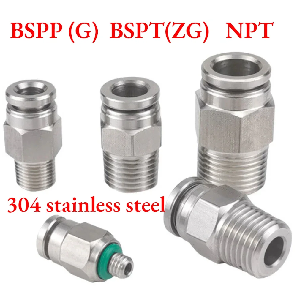 PC 1/8" 1/4" 3/8" 1/2" BSP NPT Male 4 6 8 10 12 14 16 mm Tube Stainless Pneumati...