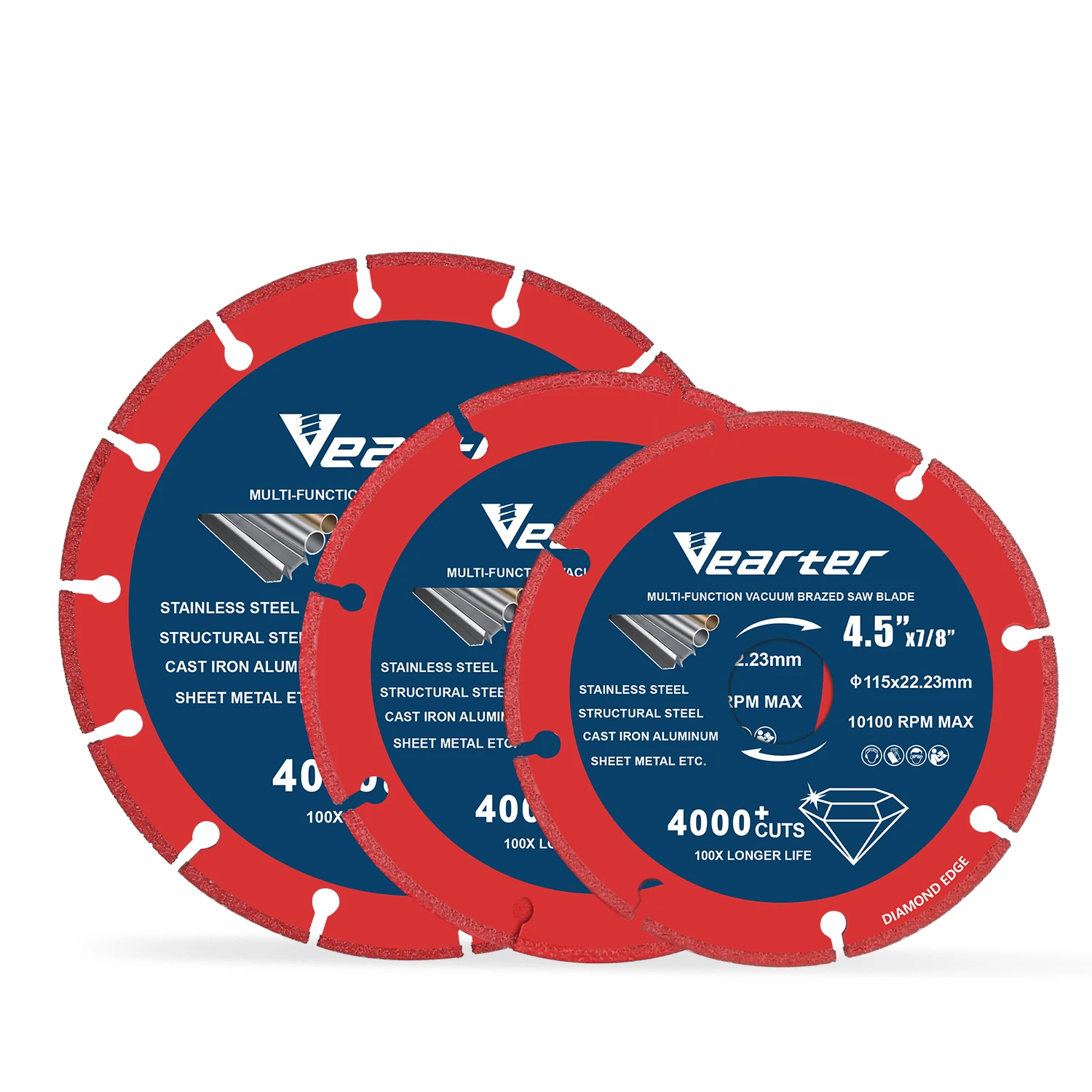 Vearter 115/125/150mm Vacuum Brazed Diamond Cutting Disc Angle Grinder Wheel For Metal Rebar Cast Ir...
