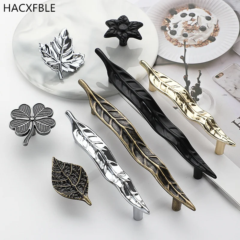Creative Leaves Gold Furniture Handle Zinc Alloy Cabinet Handles Bronze Kitchen Handle Wardrobe Pull...