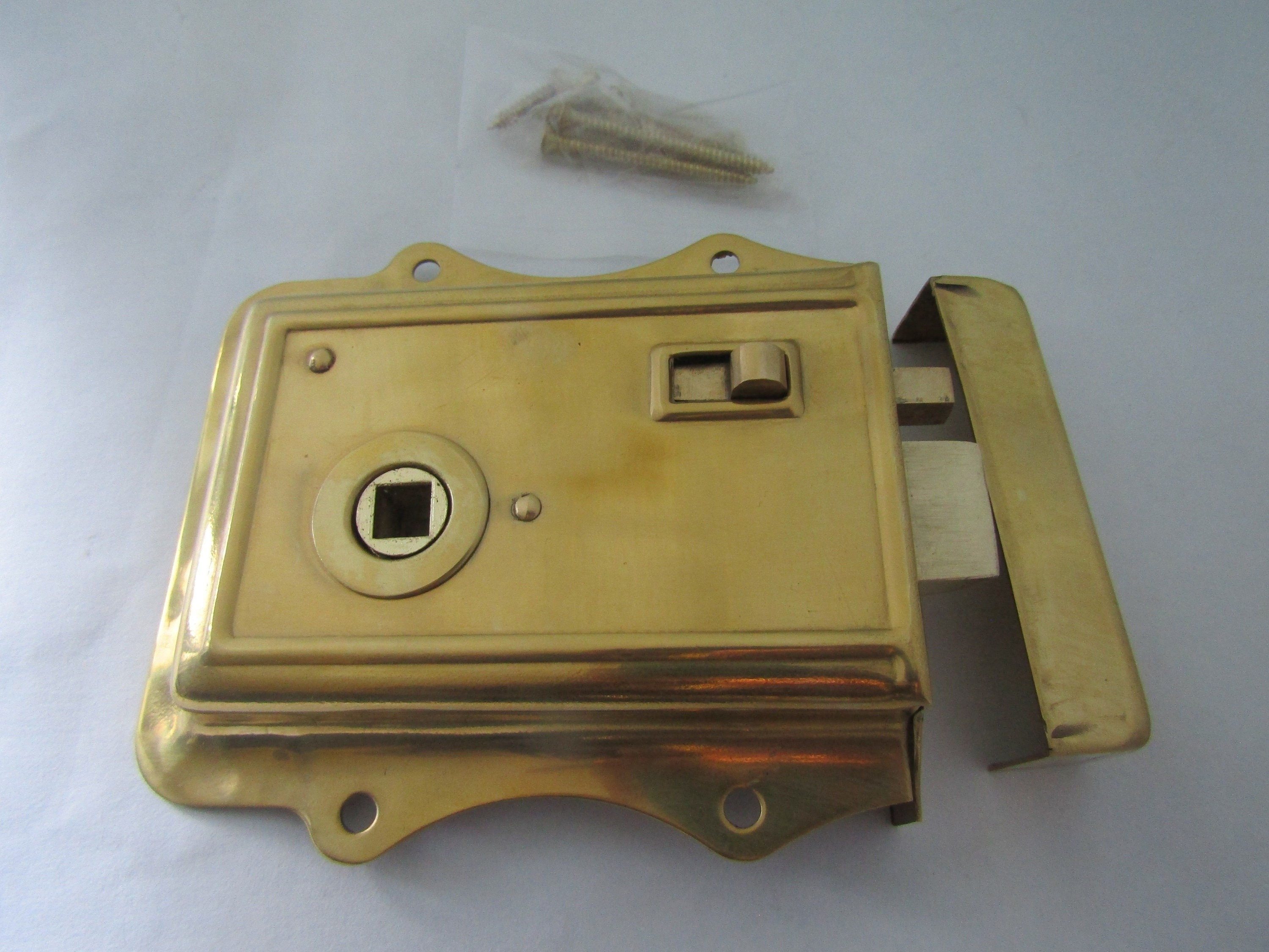 SOLID BRASS Olde Rim Latch set c/w screws RIM LATCH 125MM X 120MM DISTANCE FROM EDGE OF LOCK TO CENT...