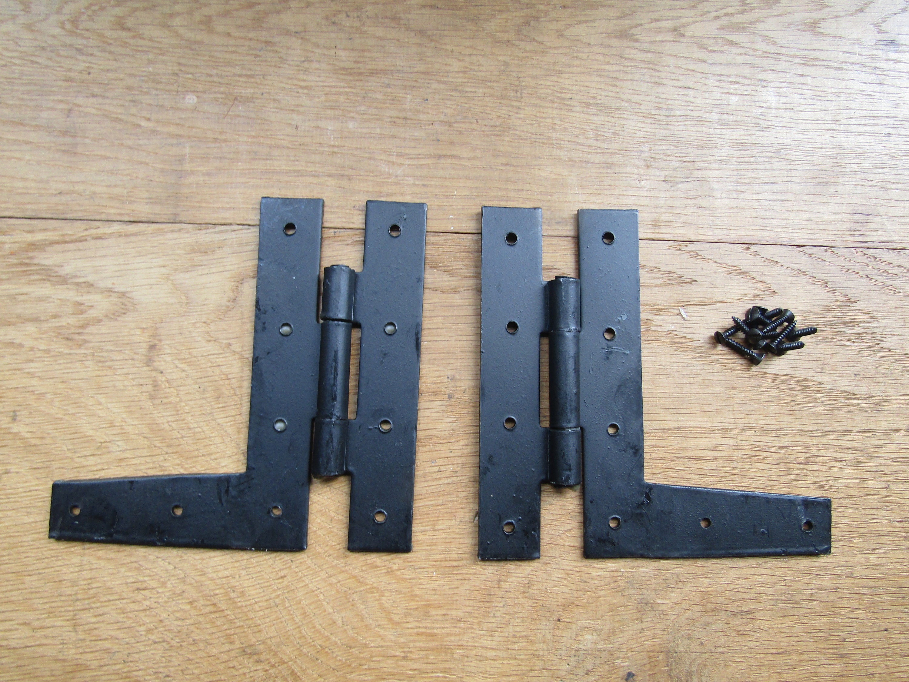 Pair Of H L Hinge Hand Forged Blacksmith Wrought iron Black wax Doo...
