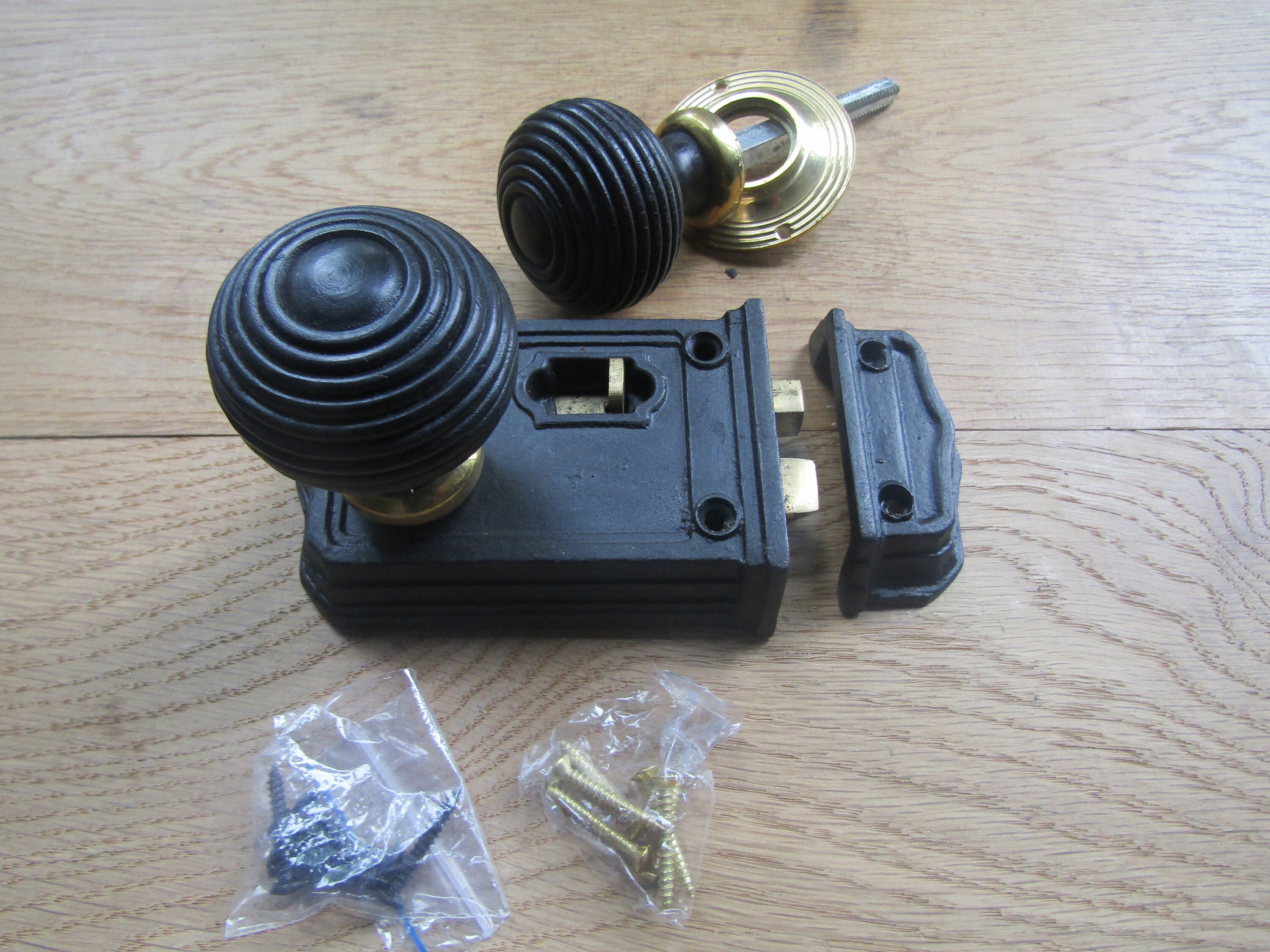 SOLID BRASS Olde Rim Latch set c/w screws A very popular item in our period door furniture collectio...