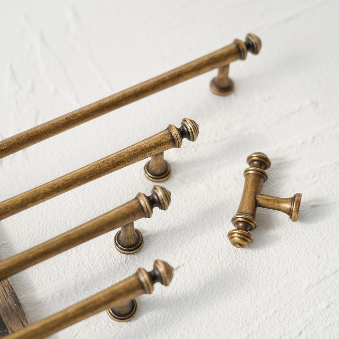 French Antique Brass Cabinet Pulls/Aged Brass Kitchen Pulls/Retro C...