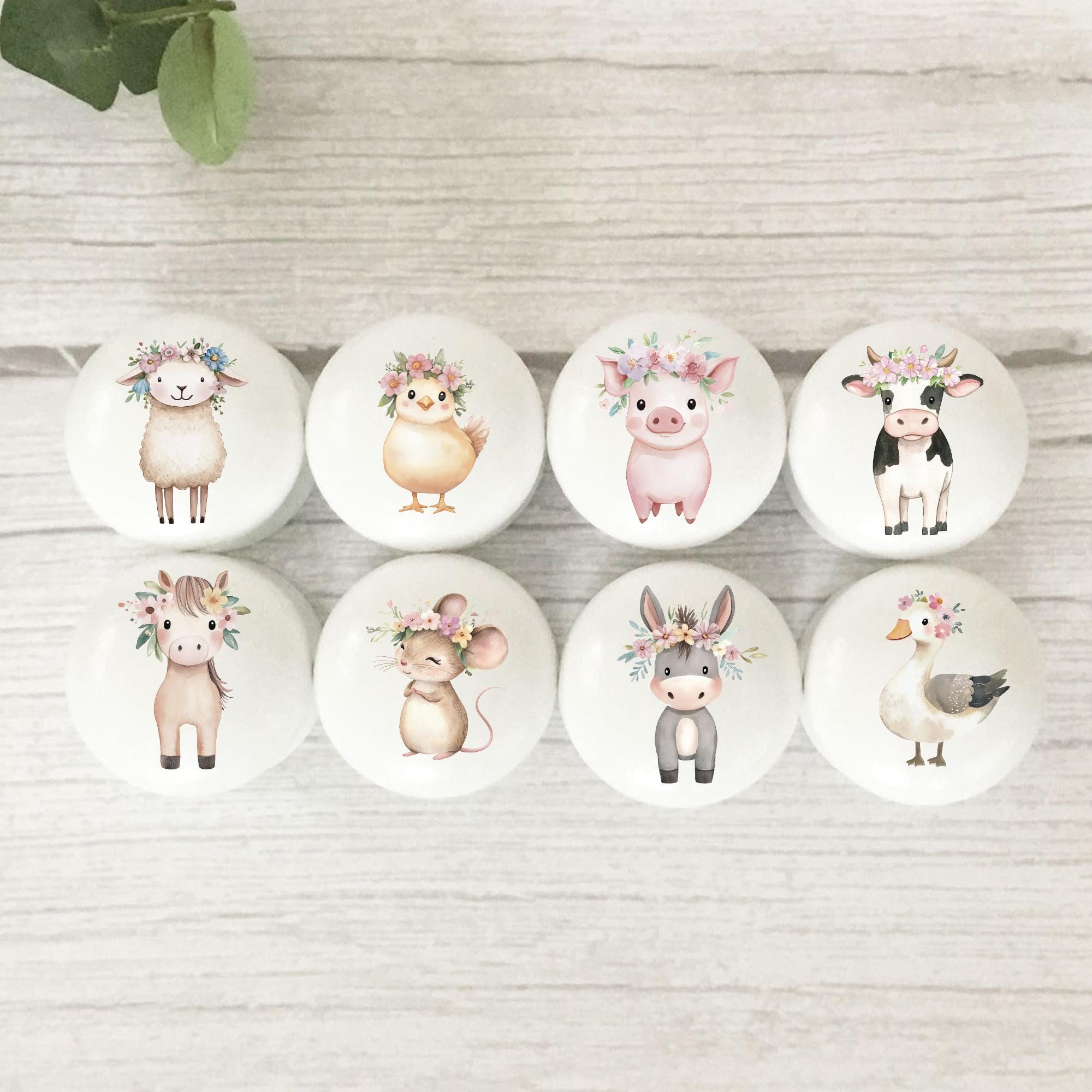 Floral farm animal furniture knobs. The Perfect addition to a child's bedroom or nursery. Our furnit...