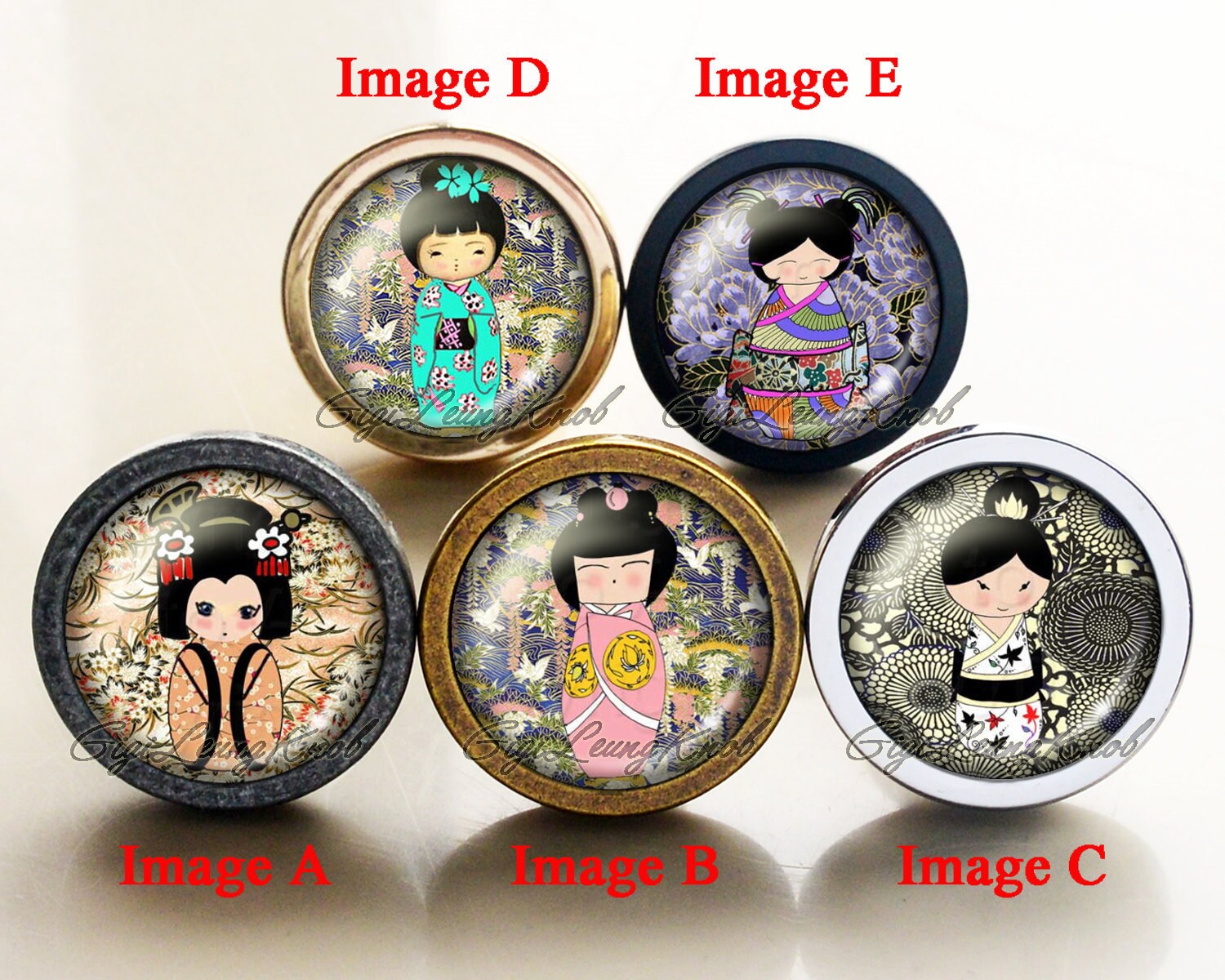 Japanese doll knobs/Drawer knobs/Handmade Vintage Bronze Dresser kn...