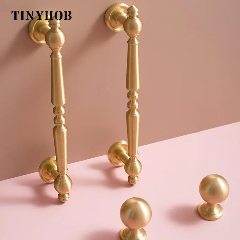 Tinyhob European Style/Vertical Lines Solid Brass Gold Drawer Knobs T Bar Handle Bedroom Pulls Kitch...