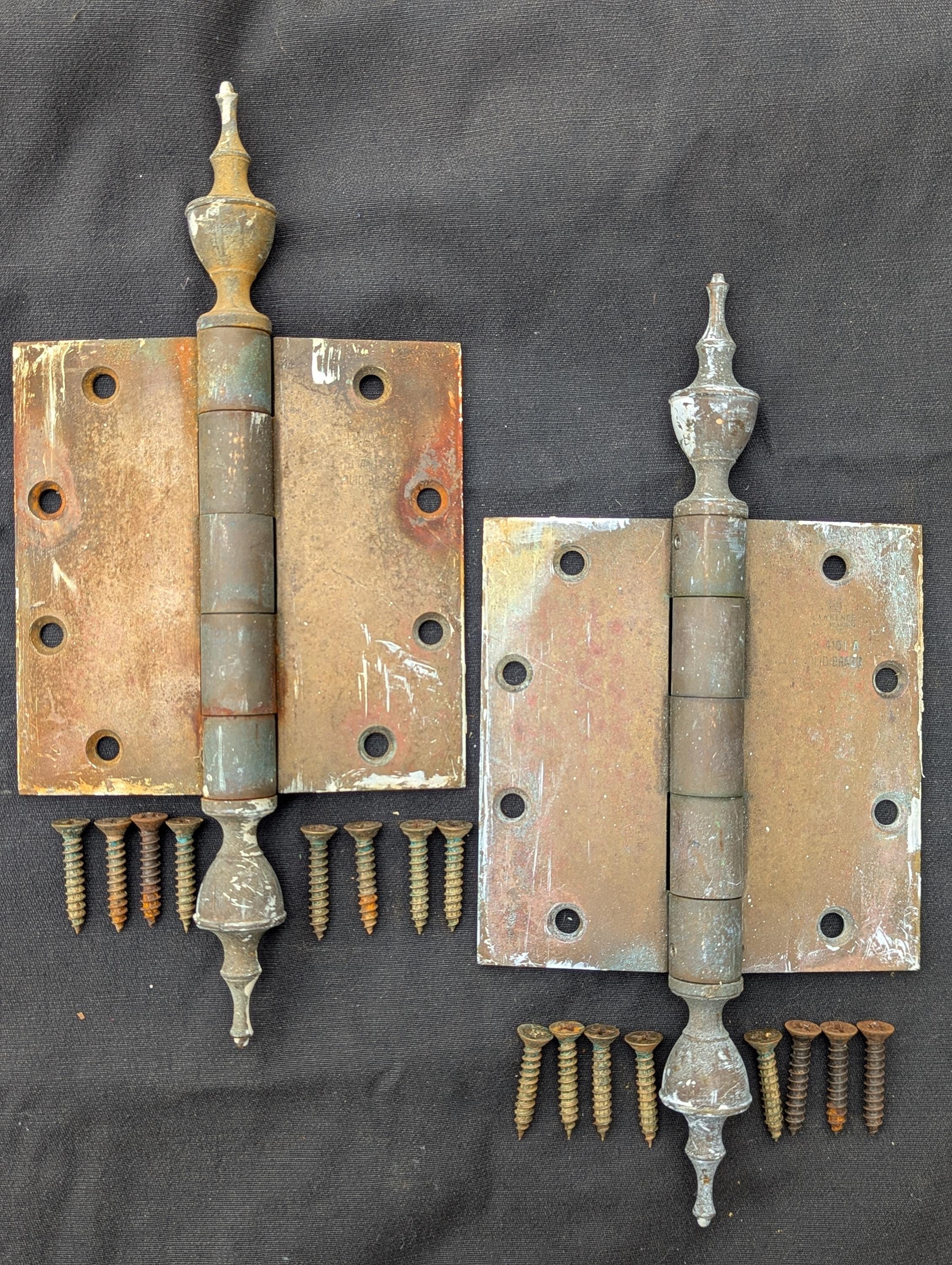 "4.5\" 2pcs Vintage Solid Brass Paumelle Finial Hinge / D...