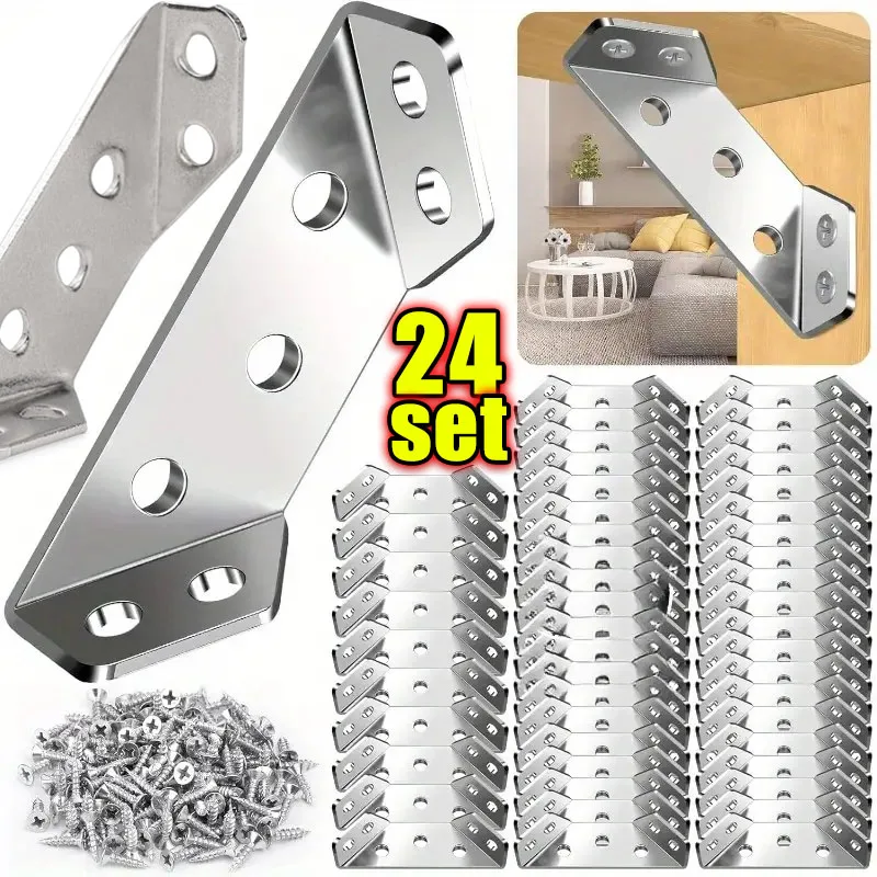 1/24set Corner Brackets Stainless Steel Furniture Angle Shelf Connector Cabinet Support Fixing Frame...