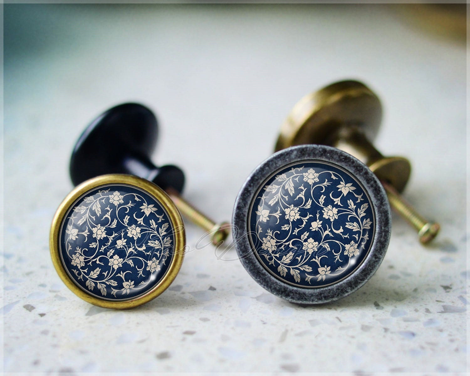 Blue and White Cabochon Knob,Dresser Drawer Knob,Furniture Cabinet ...