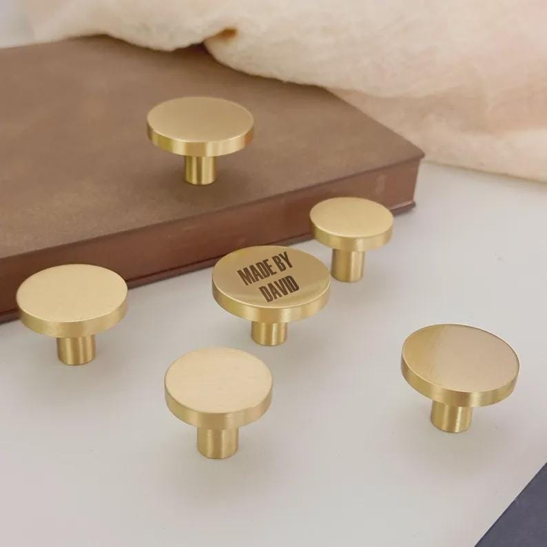 Custom Engraved Flat solid brass knob,minimalist cabinet knobs, fur...