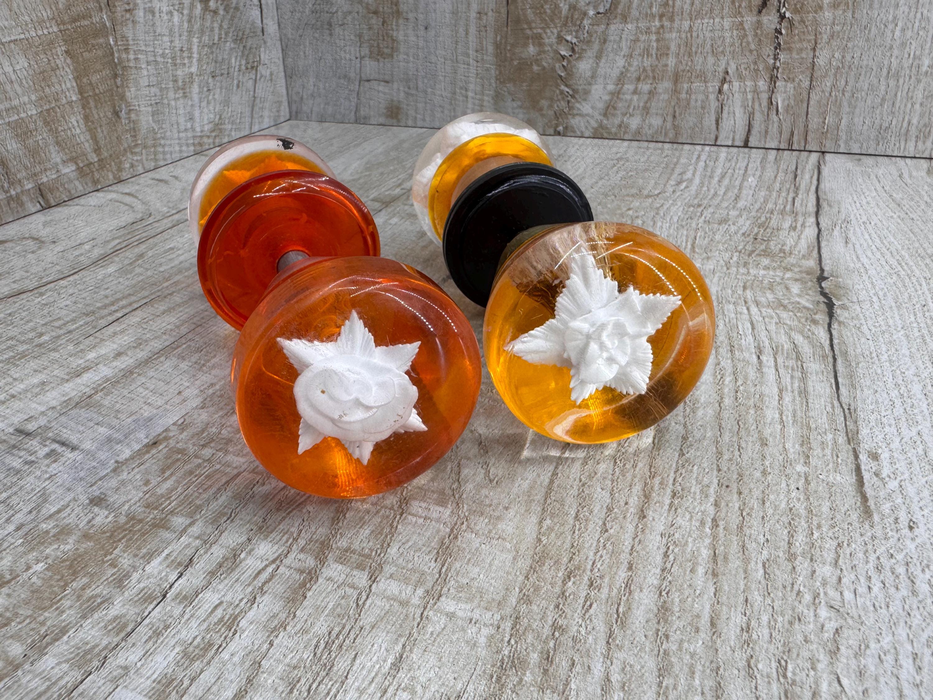 Vintage floral glass door knob Old door knobs Vintage 2 pairs door knobs door handles Soviet door ha...