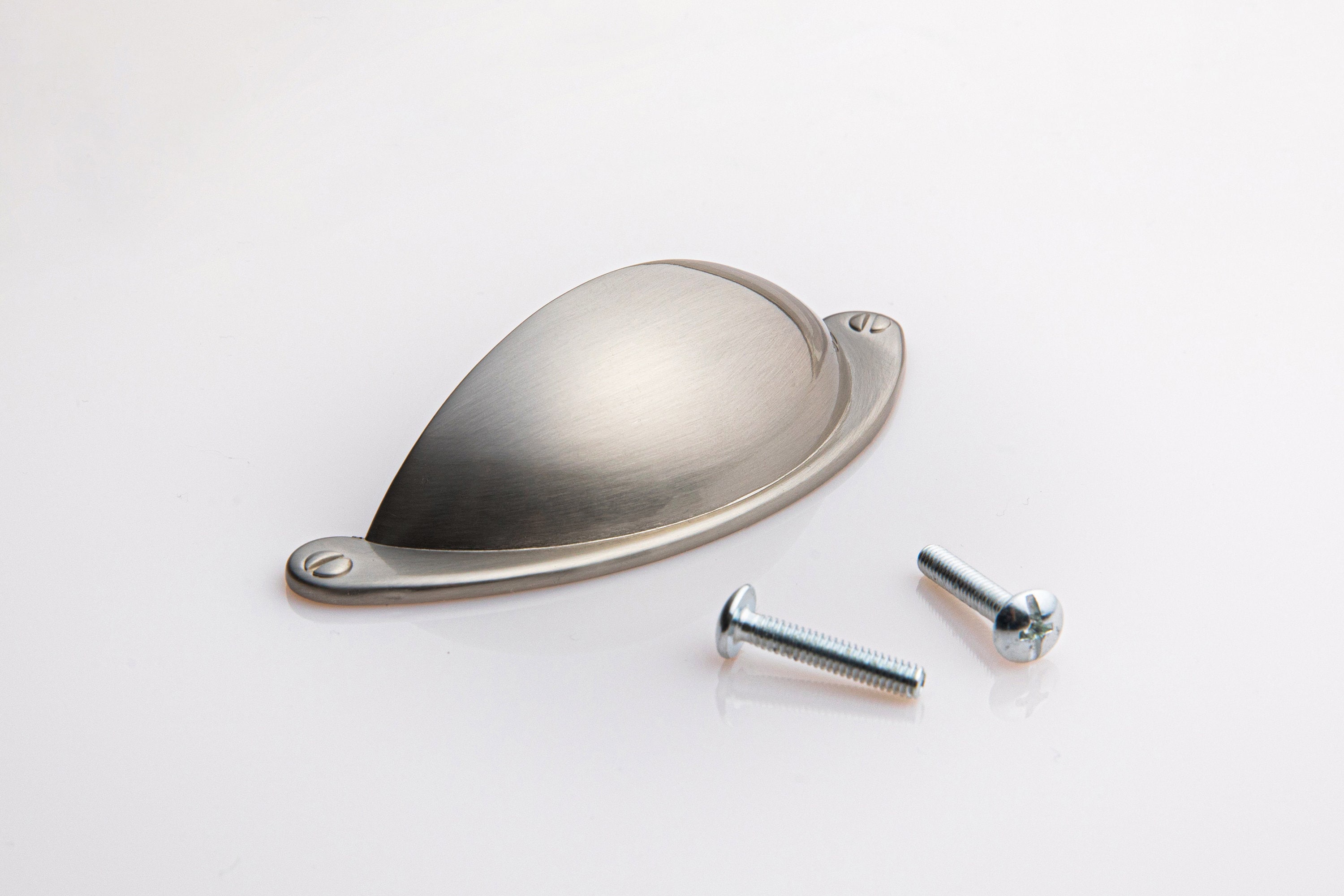 Brushed Nickel Cup Handle, Ideal for Kitchen Cupboards, Bathroom, Bedroom and other furniture Width:...