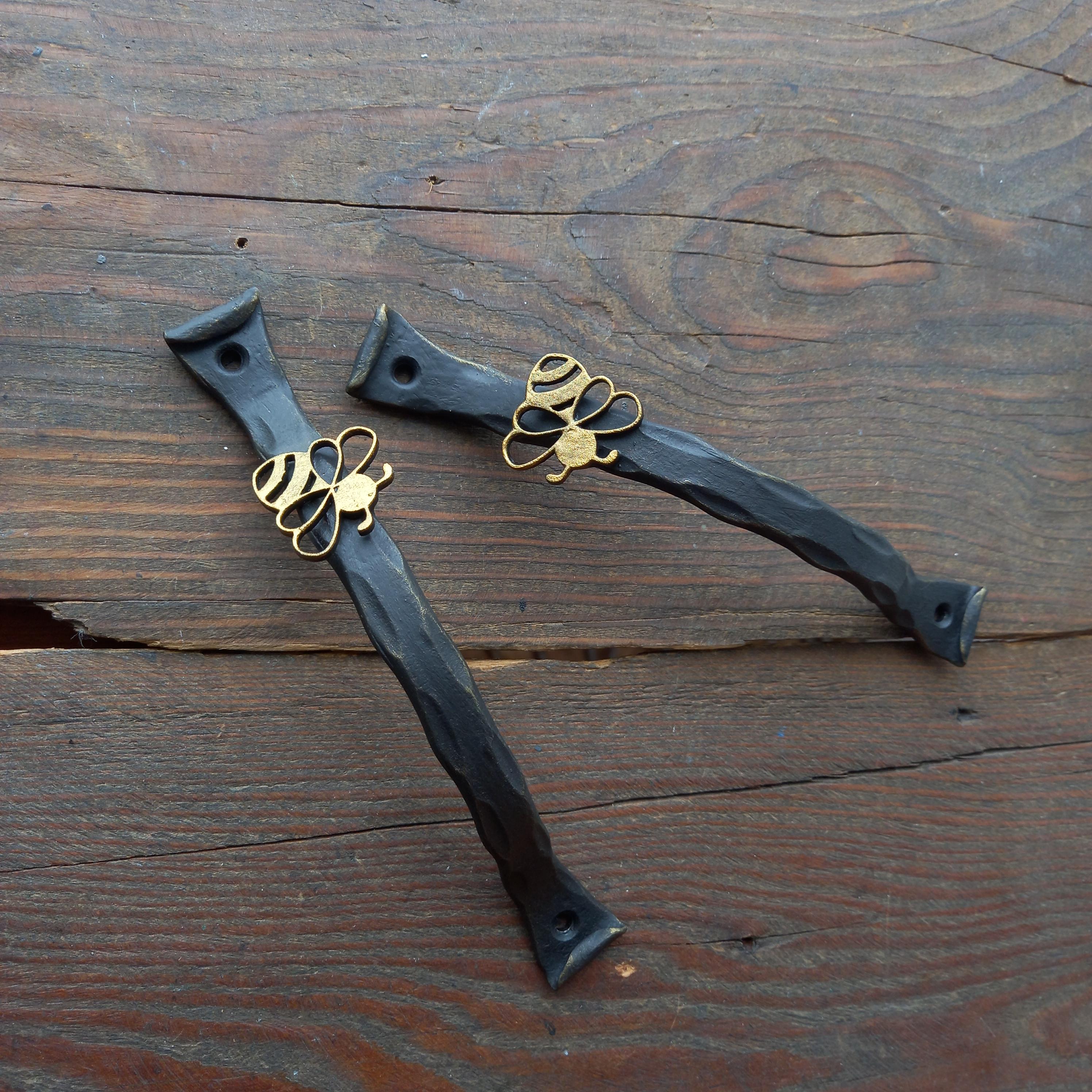 Set of pair of handles / Handles With Bee / Barn Door Hardware / Do...