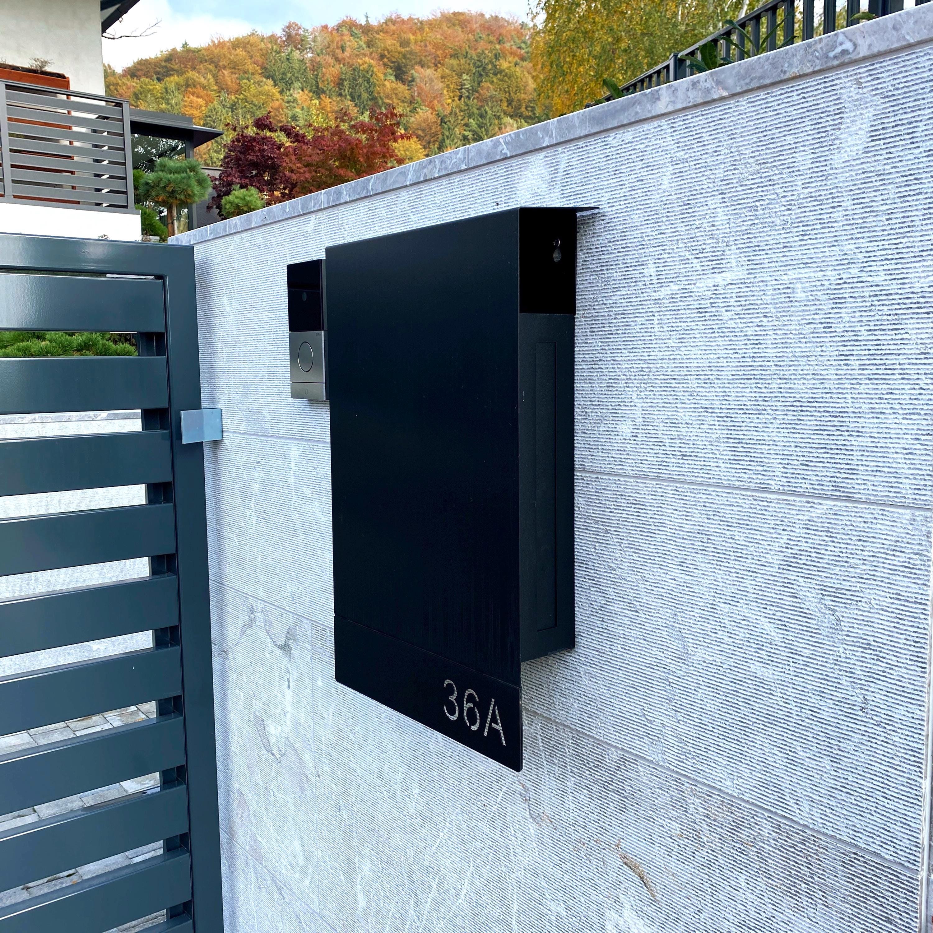 Large Locking Black Mailbox with House Numbers - Modern Personalize...