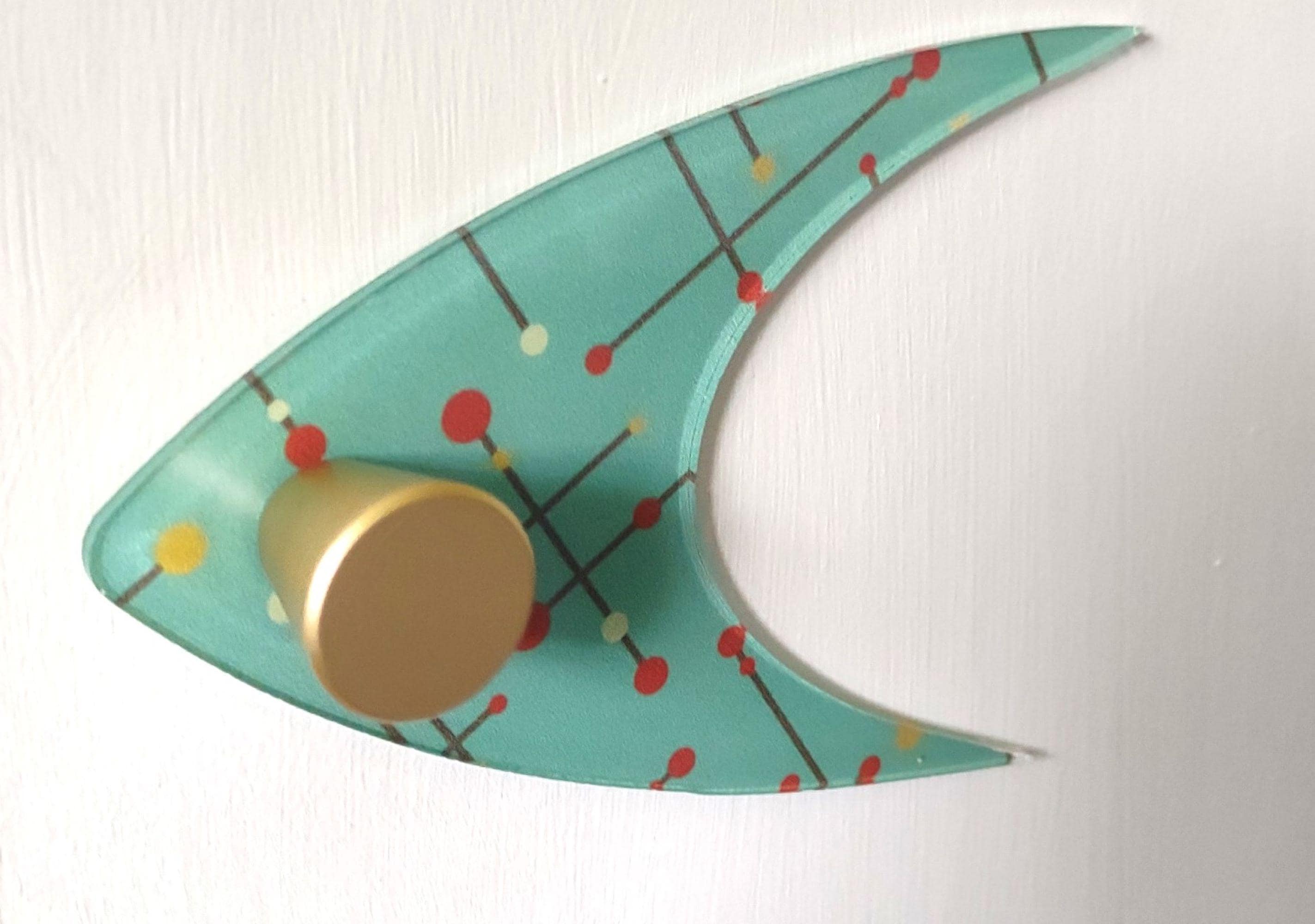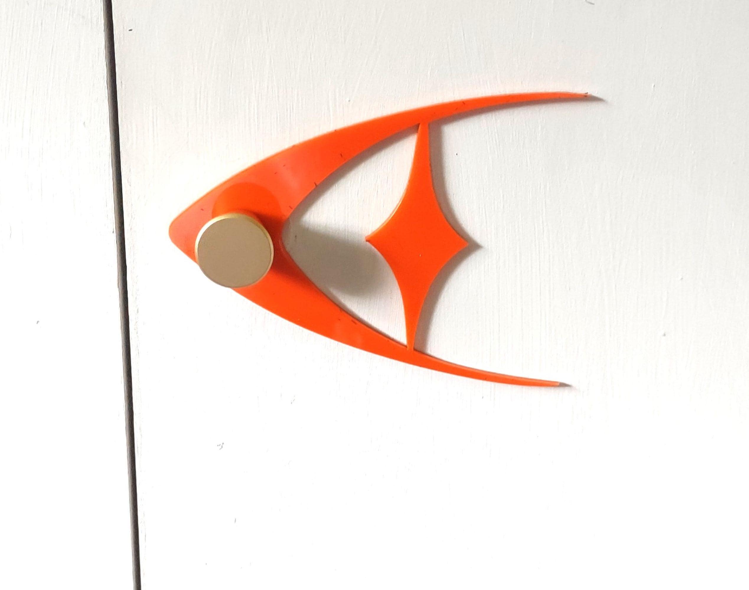 Mid Century Modern Boomerang Backplate with Brass Knob: Bi-Fold Doo...
