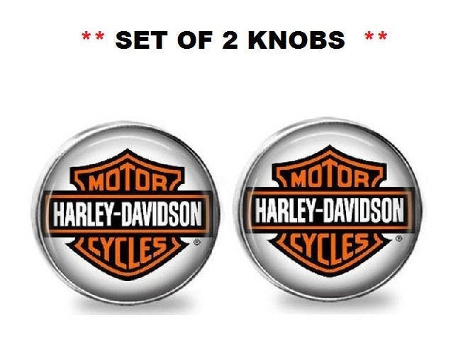 SET OF 2 Orange & Black Biker Motorcycle GLASS Cabinet Drawer B...