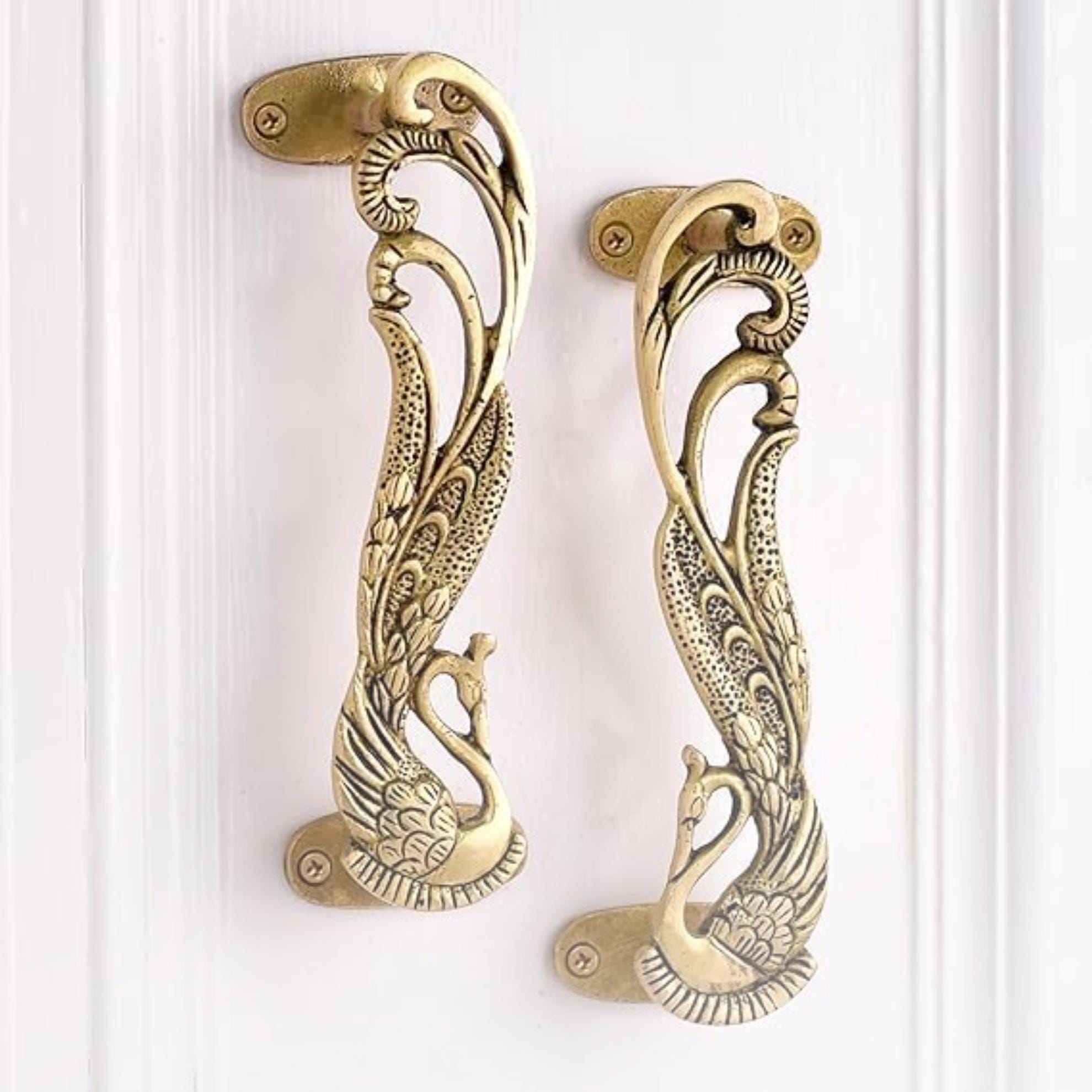Peacock Design 7 Inches Brass Door Handle Antique Door Handle | Gol...
