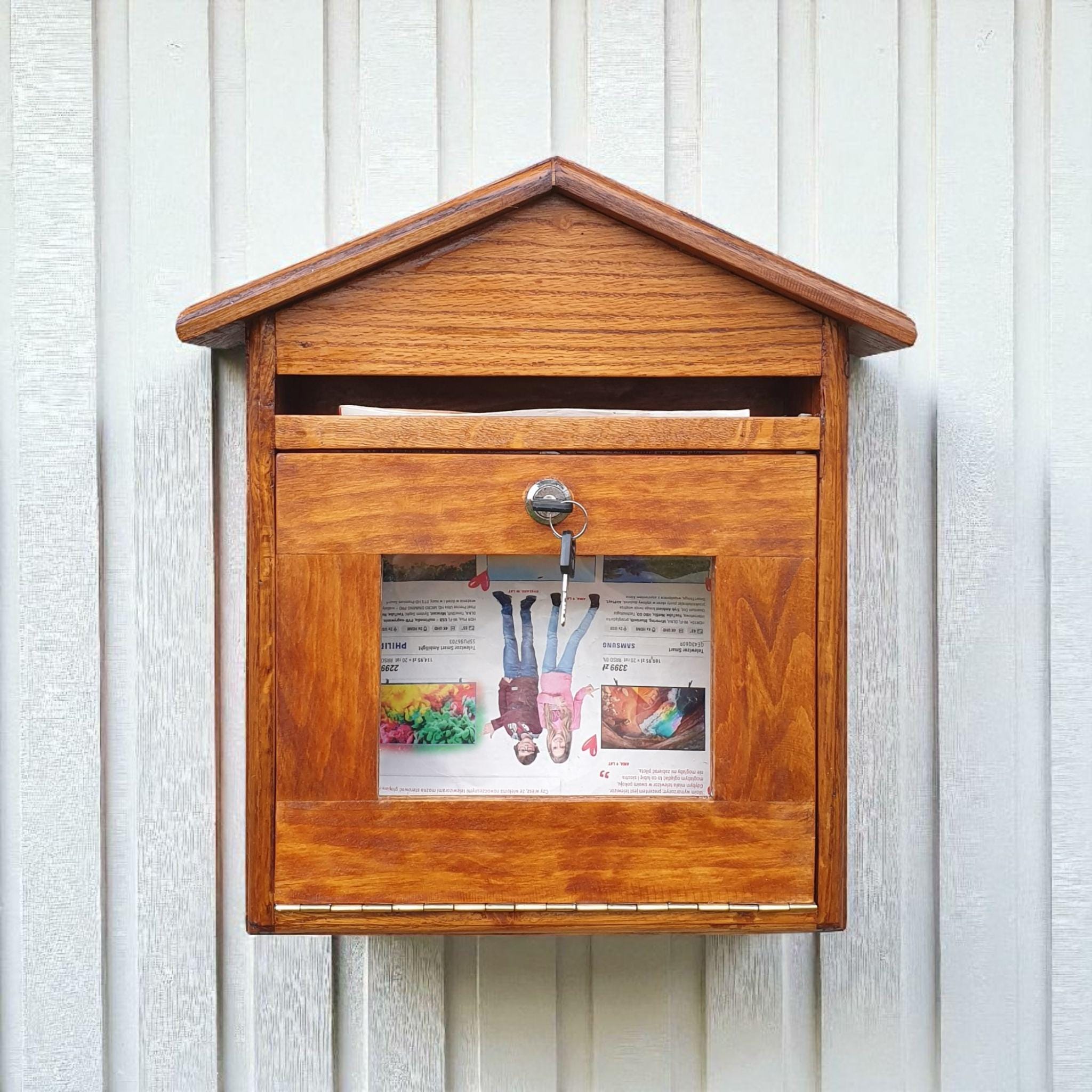 Solid Oak Mailbox with Window.Wooden Lockable Post Box.Rustic Outdo...