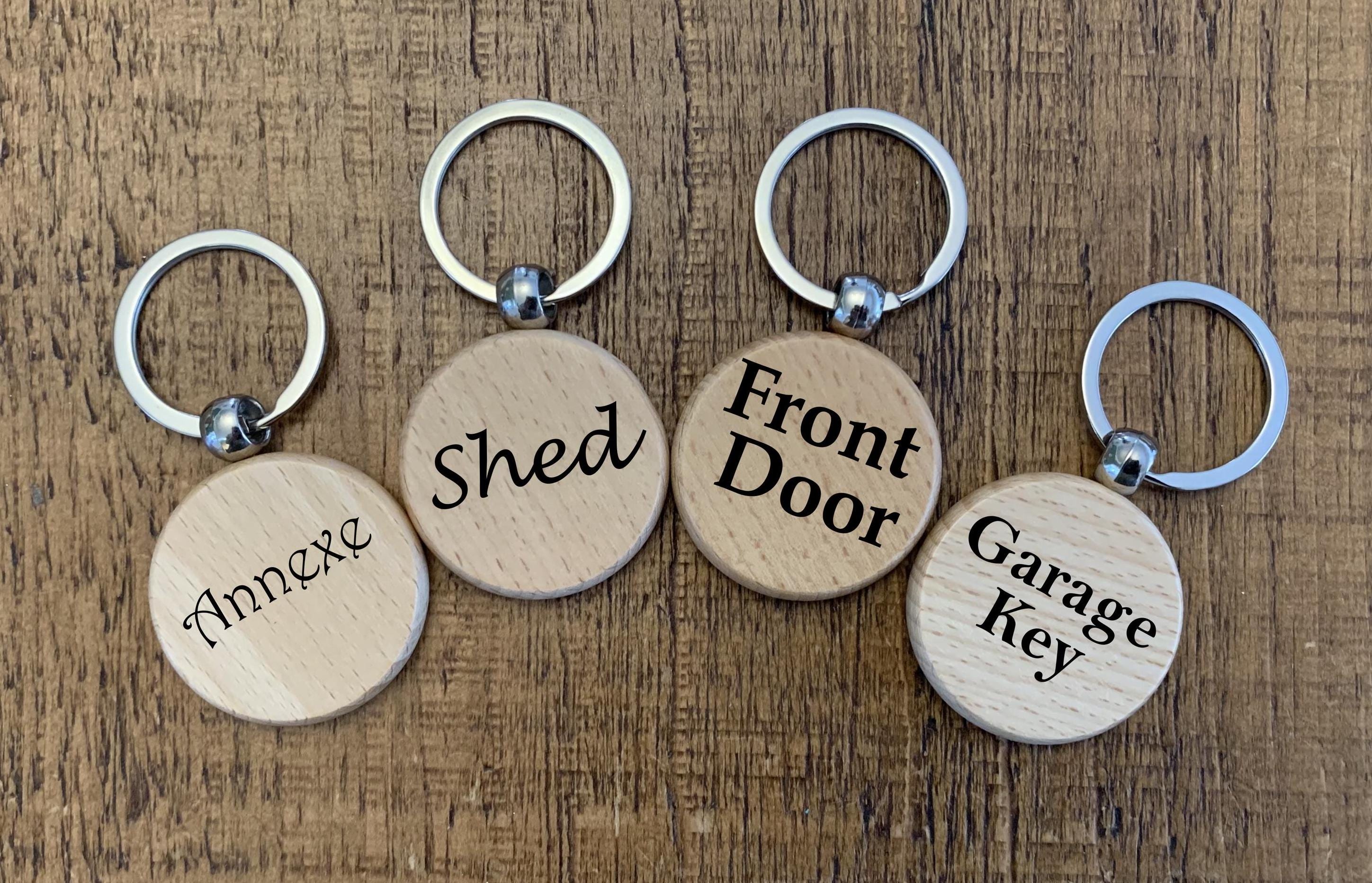 Door Key- Personalised Engraved Circular Solid Wood Keyring for you...