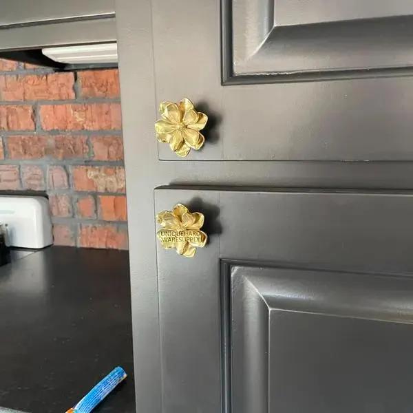 Flower Gold brass knobs and Pulls,Brass camellia Knobs , custom eng...