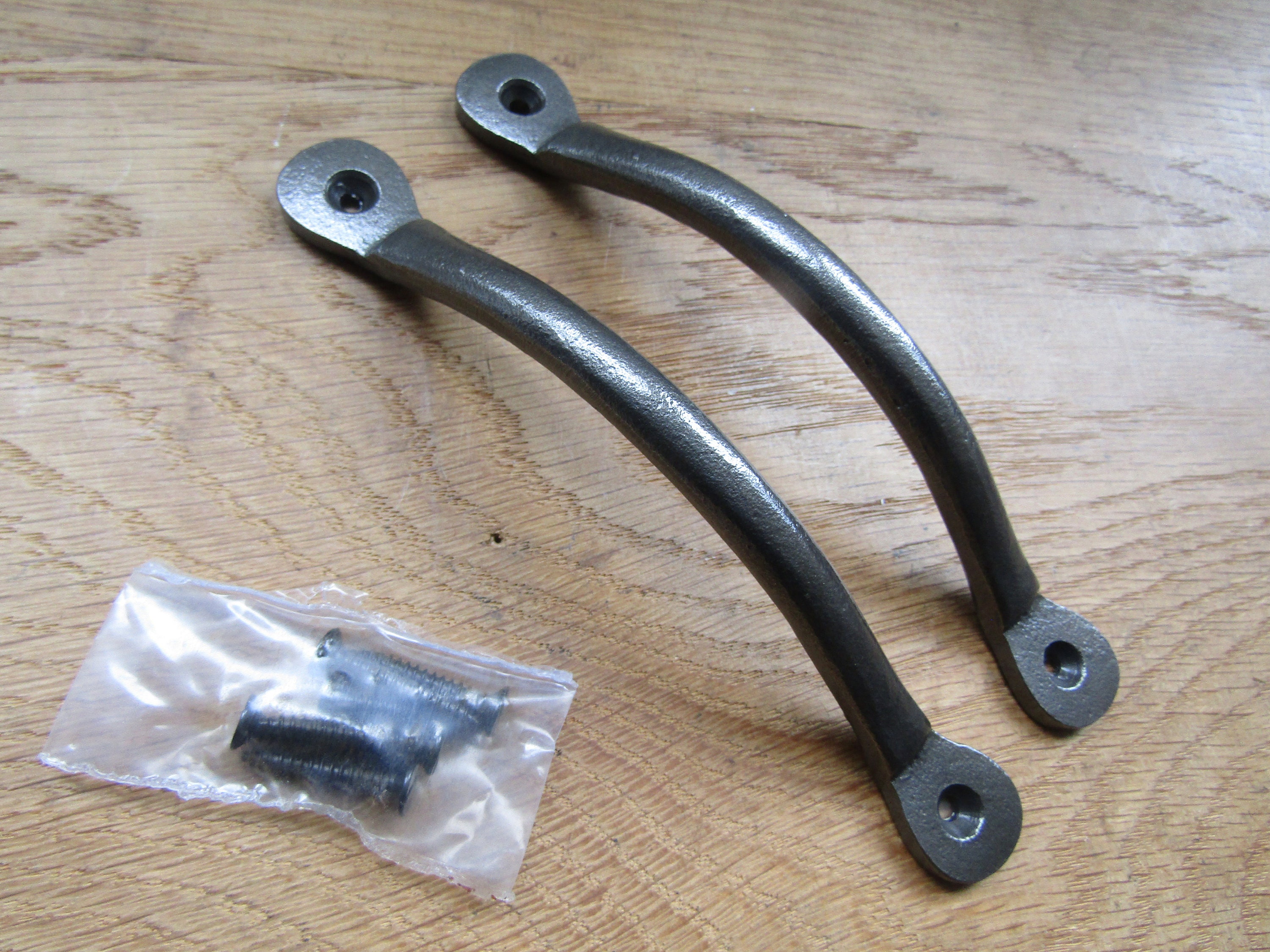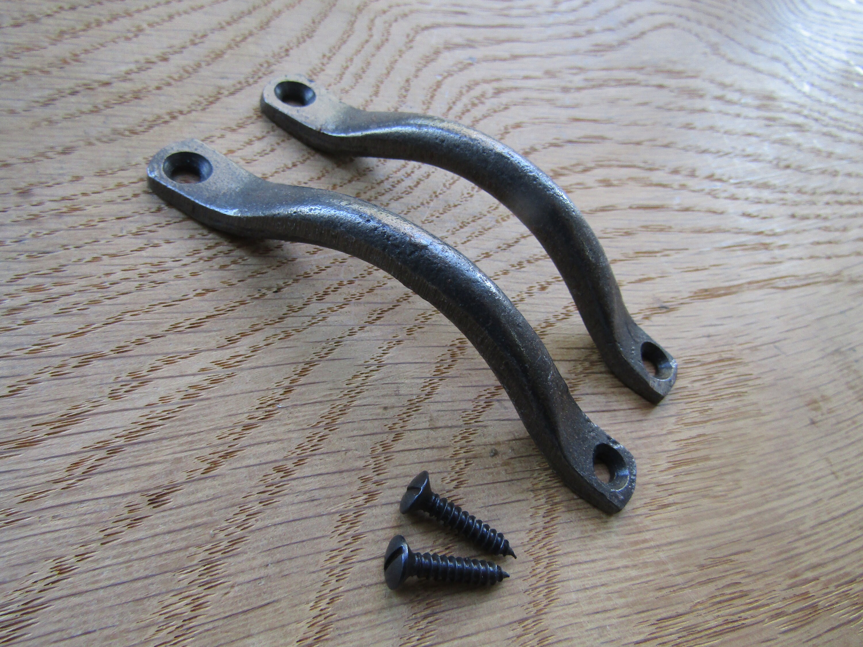 "4\" Small cast iron pull handles c/w screws Sold as pairs Material: cast iron Finish: Ant...