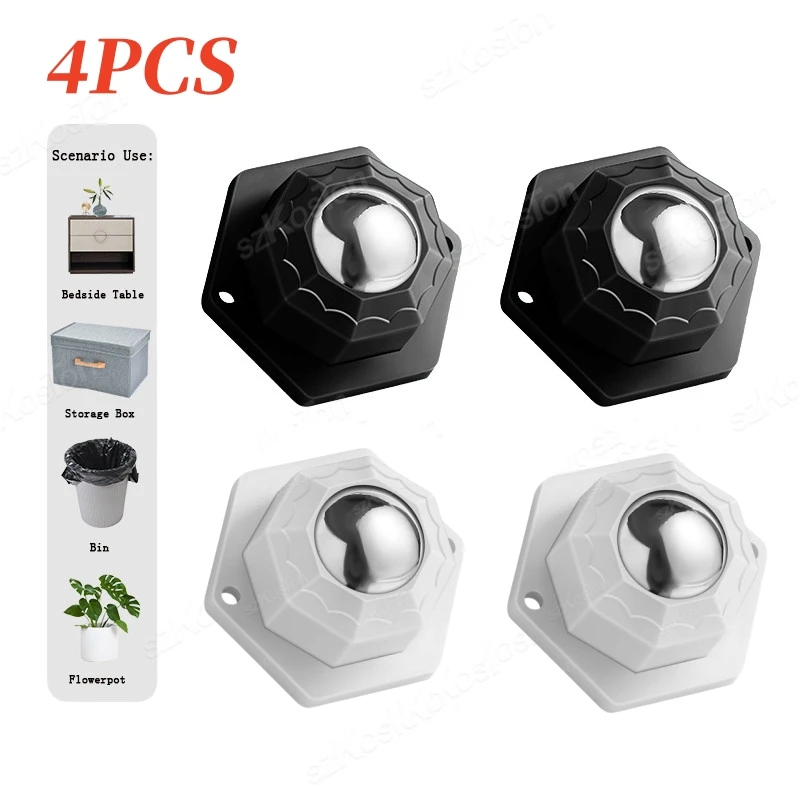4Pcs Furniture Casters Wheels Self Adhesive Heavy Duty Pulley Stainless Steel Nylon Strong Universal...