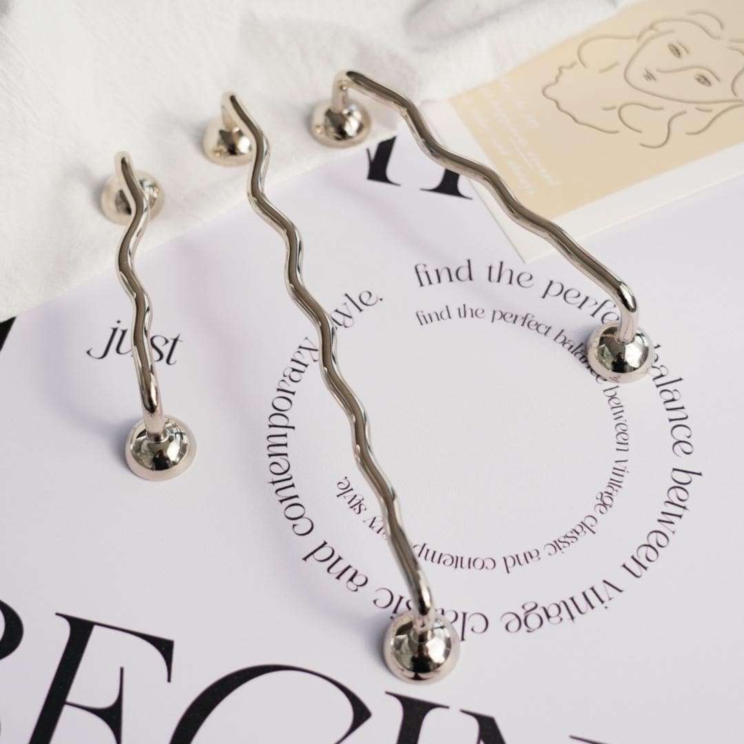 silver-colored WIGGLE brass handles/Solid brass handles/wavy cabine...