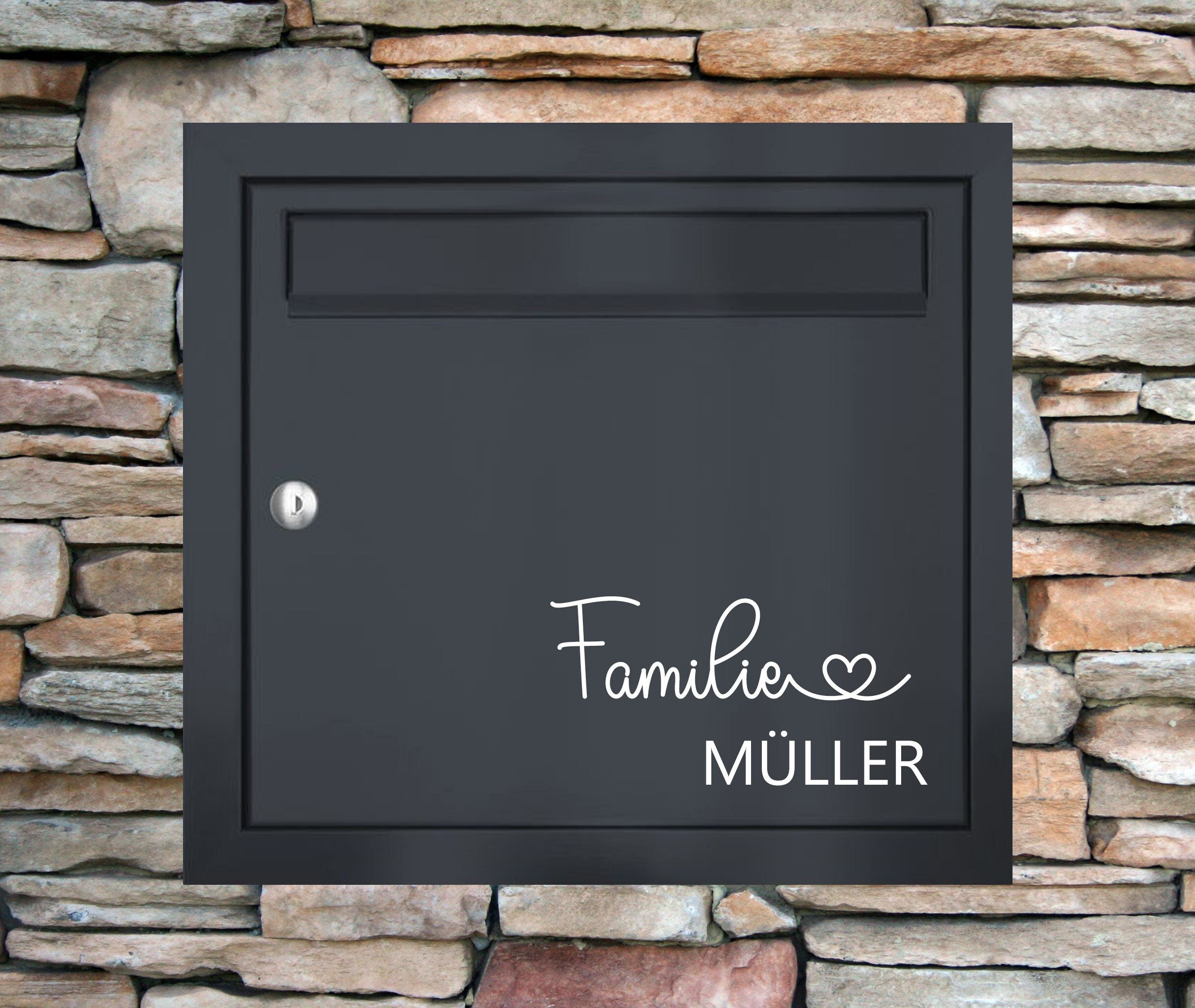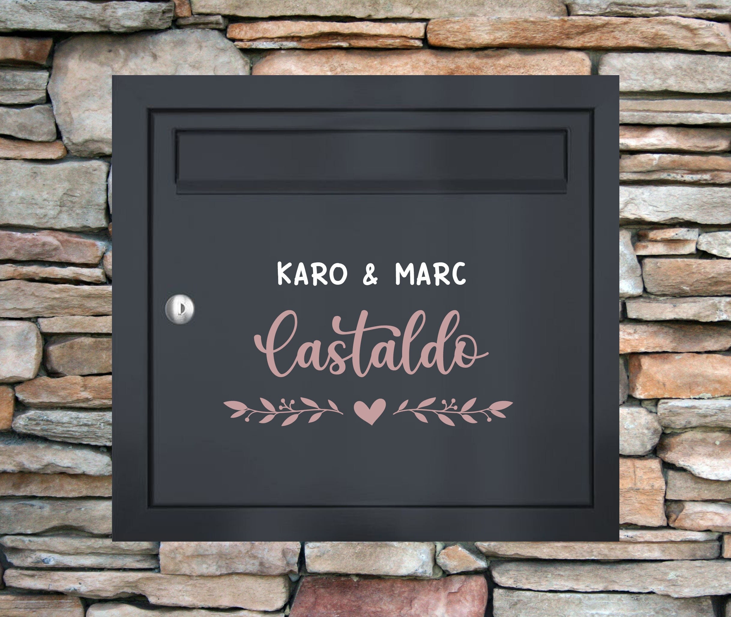 "Mailbox nameplate \"Family + Name\" with heart, str...