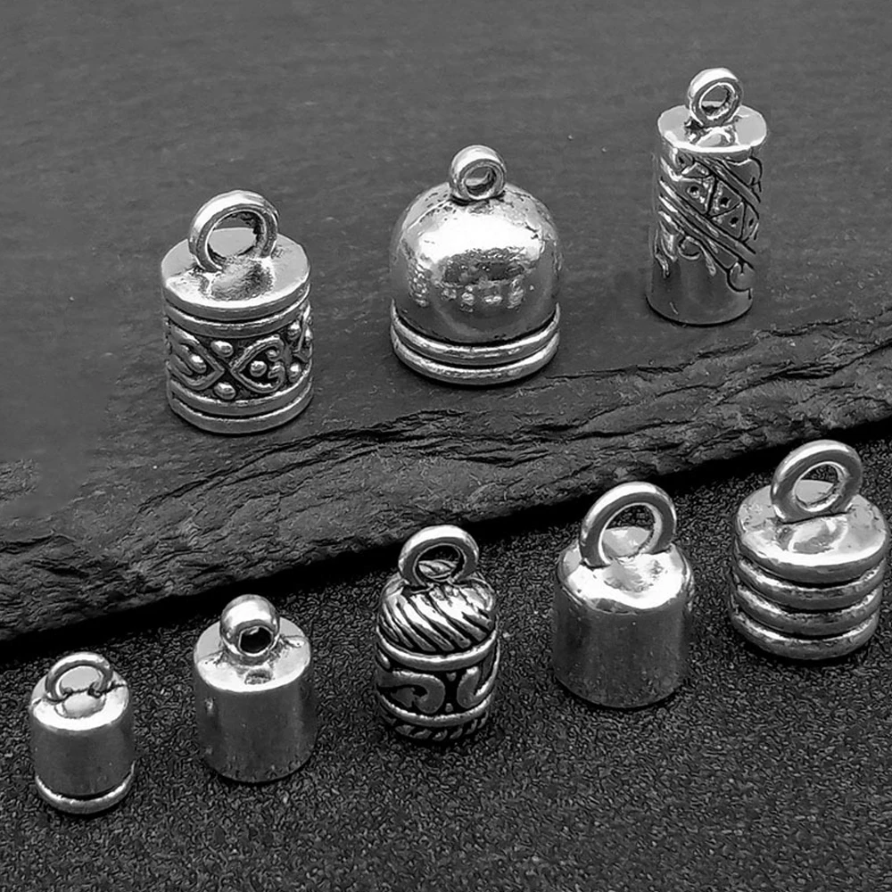 10pcs Antique Silver Crimp Cord End Cap Barrel with Loop for Beading Tassels Wire Thread Earring Bra...