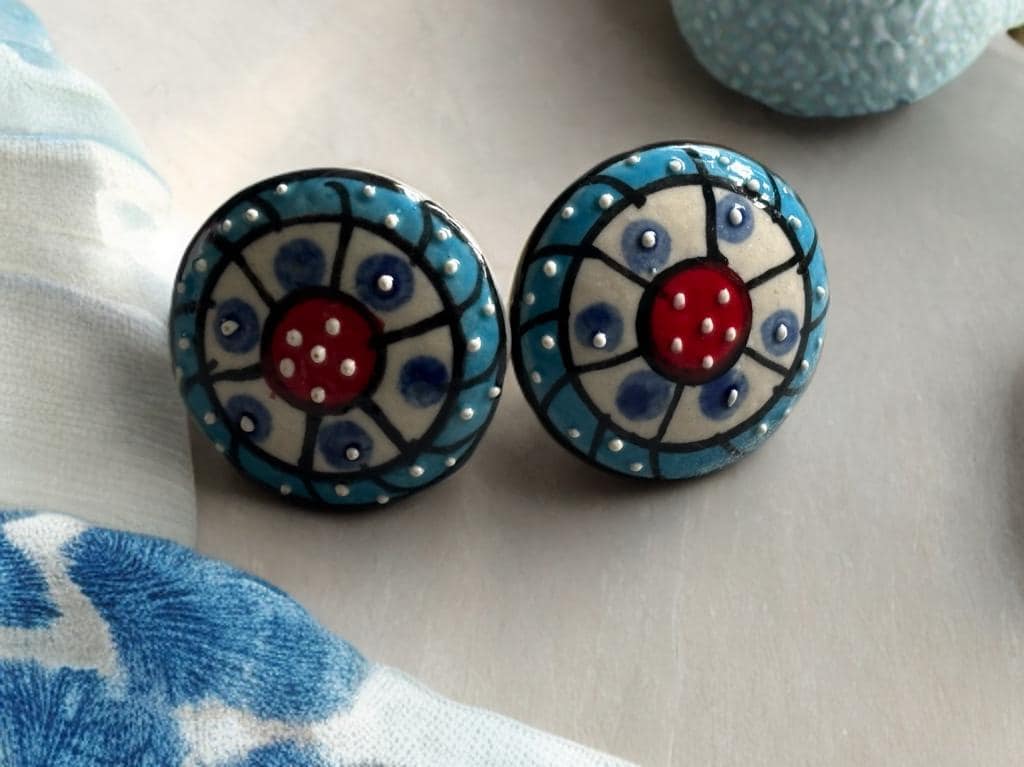 Blue hand painted drawer knob turquoise ceramic knob blue and white...