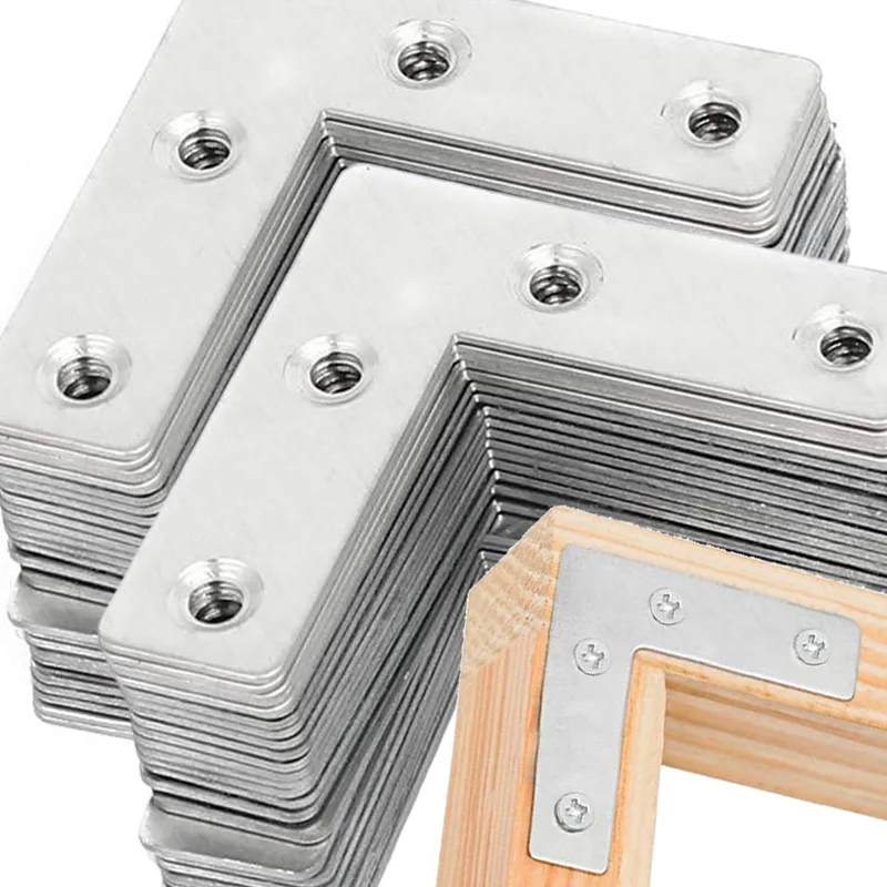 Stainless Steel L Shape Corner Bracket Right Angle Braces Wooden Fr...